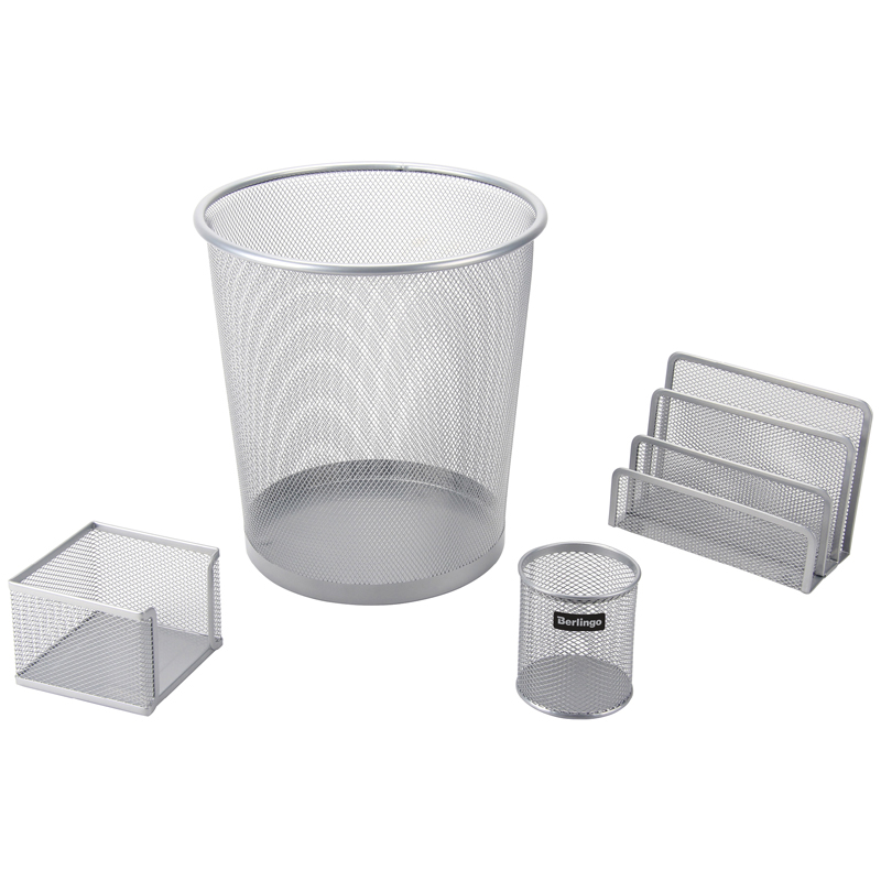 Настольный набор из металла Berlingo "Steel&Style", 4 предмета, с корзиной, серебристый