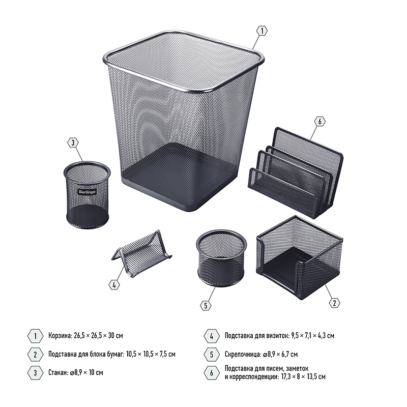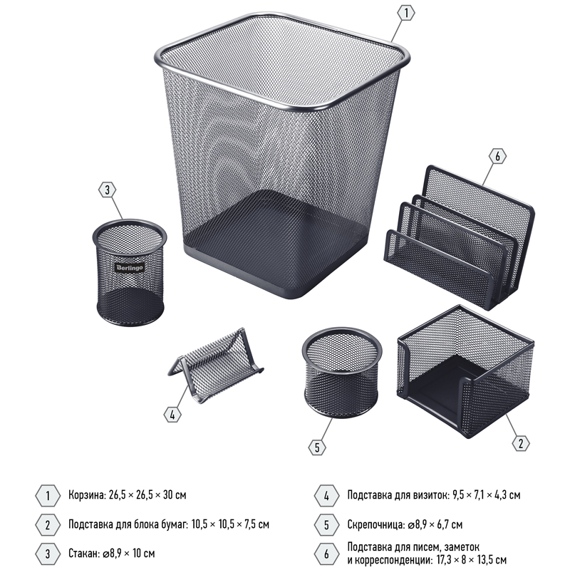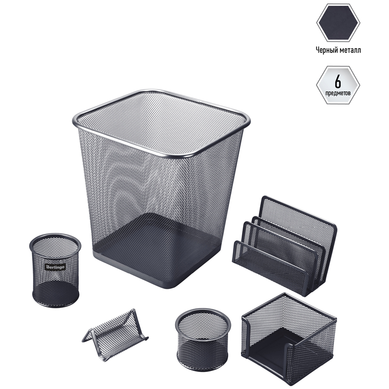О товаре «Настольный набор из металла Berlingo "Steel&Style", 6 предметов, с корзиной, черный»