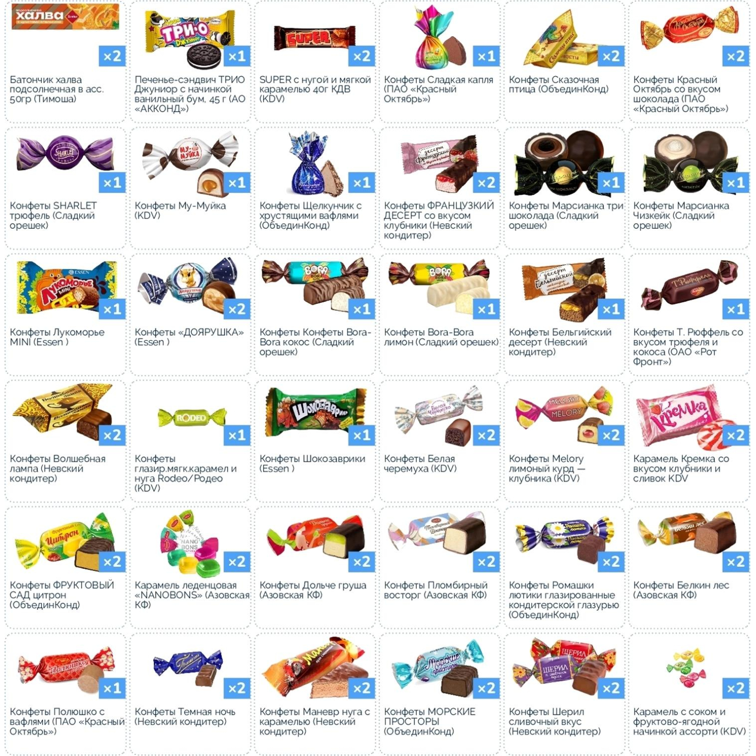 Внимание! Состав конфет в наборе может быть заменён на аналогичные позиции, в случае отсутствия у фабрики указанной Конфета на момент фасовки набора. Замена Конфета происходит с сохранением категории, ценового сегмента и вкусовых характеристик.
