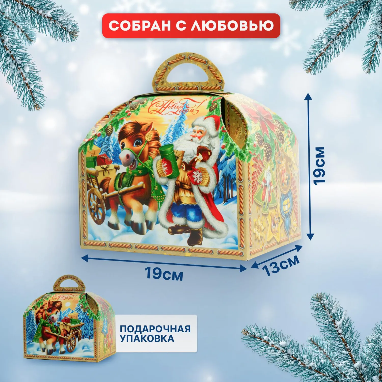 О товаре «Новогодний сладкий подарок Ларец Лошадка Картон 1000 грамм, K087»