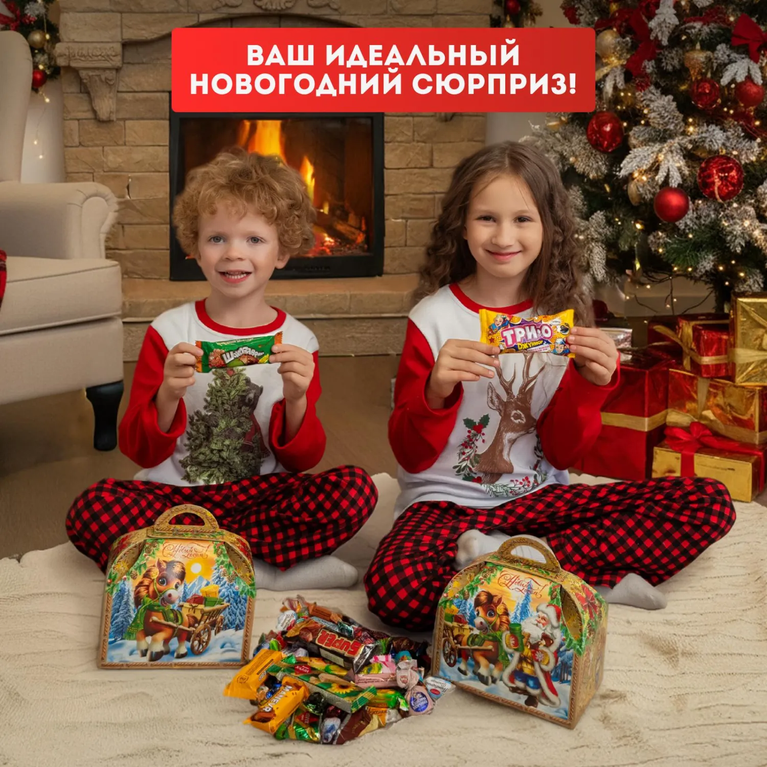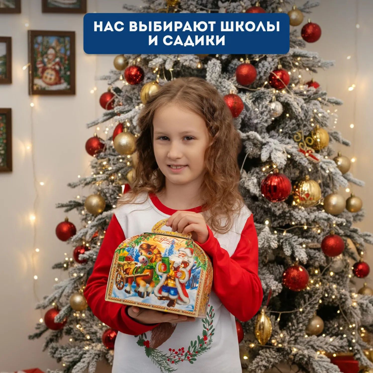 Внутри — 1000 грамм вкусных конфет, которые подарят детям радость и создадут праздничное настроение. Красочный и прочный ларец можно использовать и после праздников — для хранения игрушек, сокровищ или мелочей.