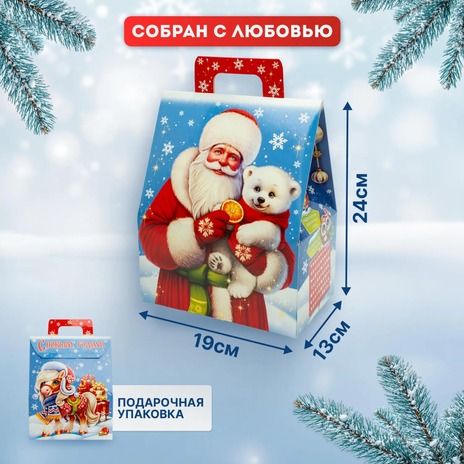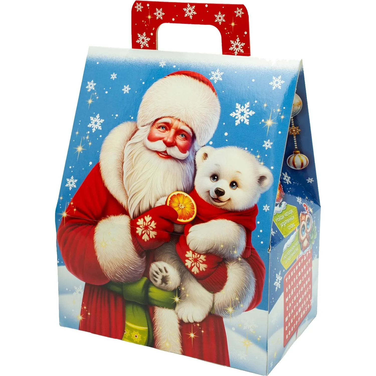 Новогодний сладкий подарок «Огоньки» — картонная коробка с праздничным дизайном — настоящий символ тепла и новогоднего настроения! Прочная и удобная упаковка легко переносится и станет отличным подарком под ёлку.