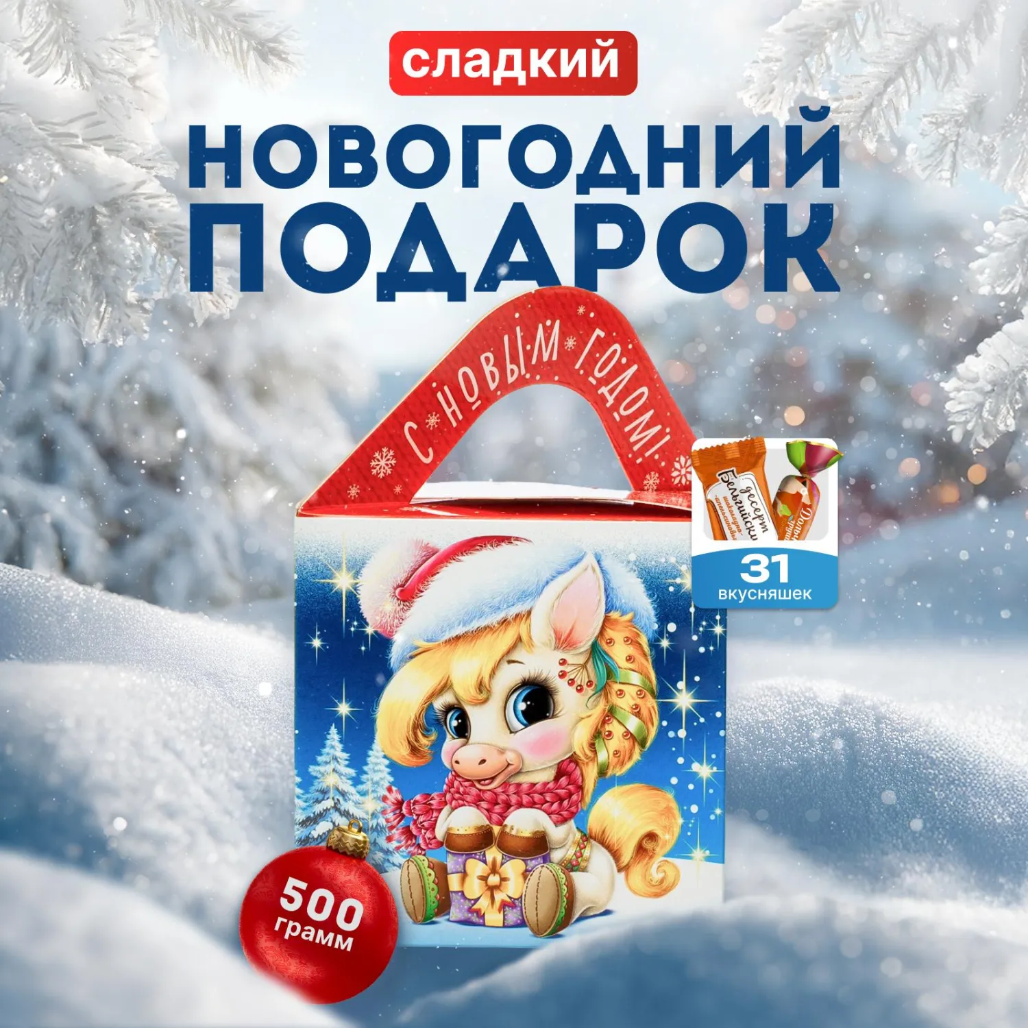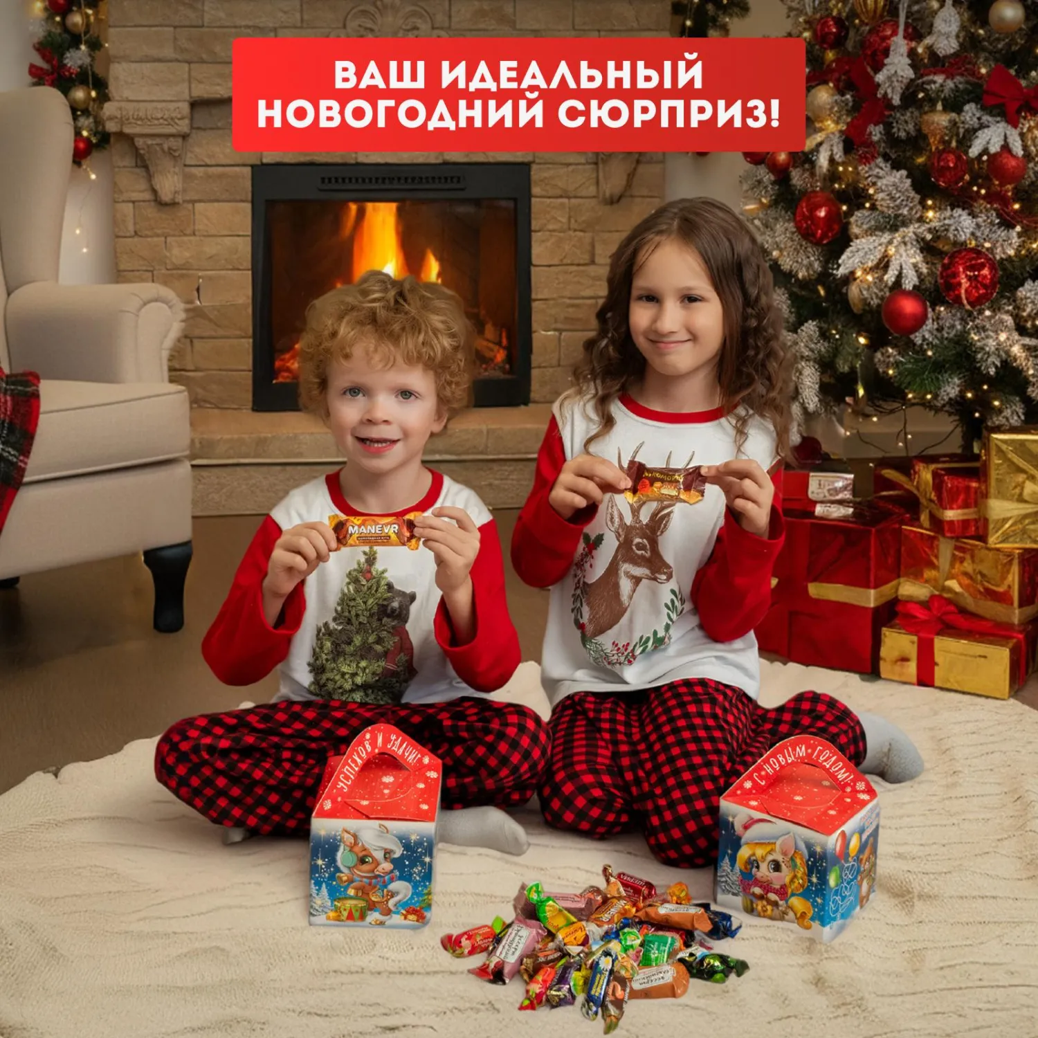 Новогодний сладкий подарок «Оливия и Оливер» — вкусные сладости и яркая упаковка, создают атмосферу тепла и радости. Идеальный сюрприз для детей.
