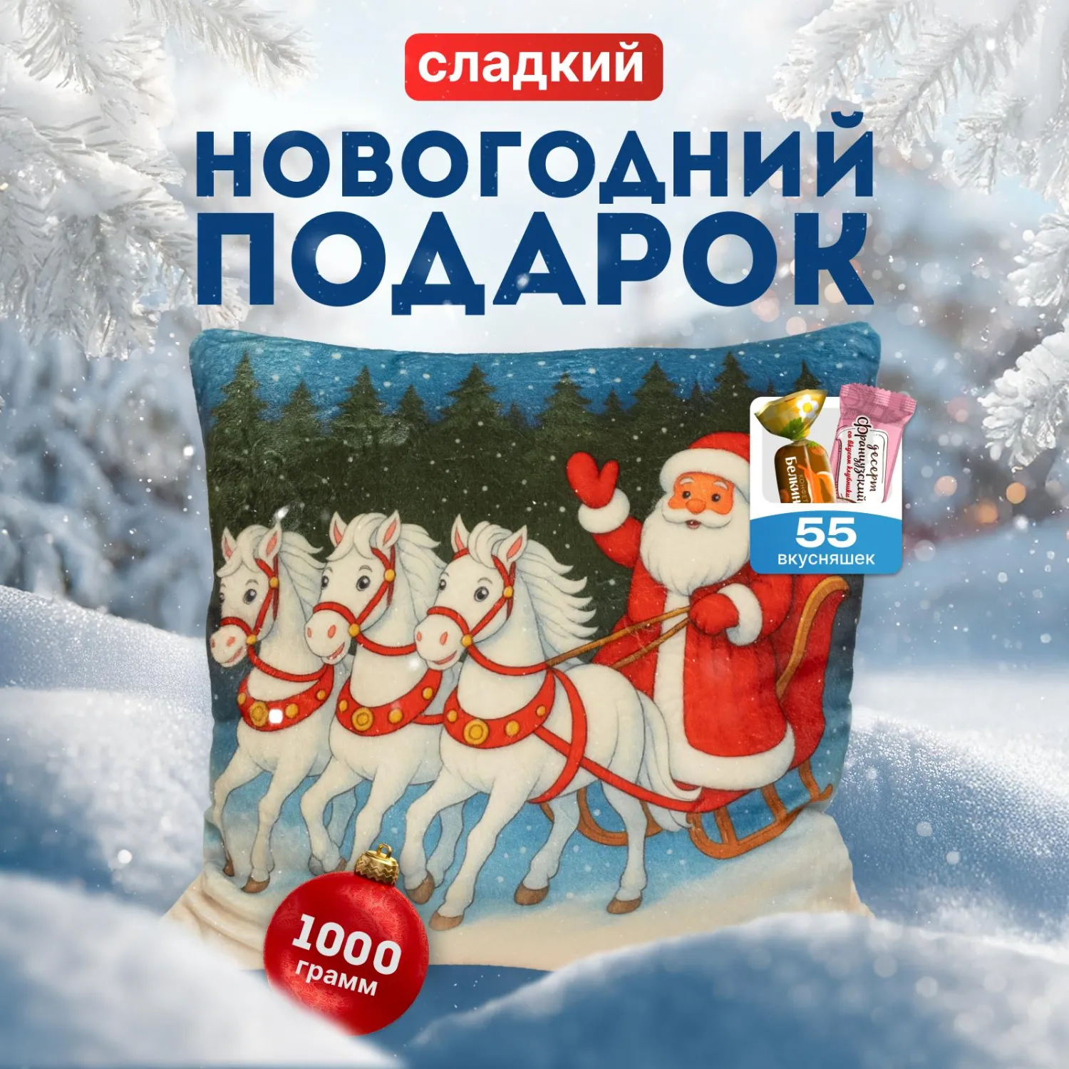 Новогодний сладкий подарок Подушка-тройка Подушка 1000 грамм, K041