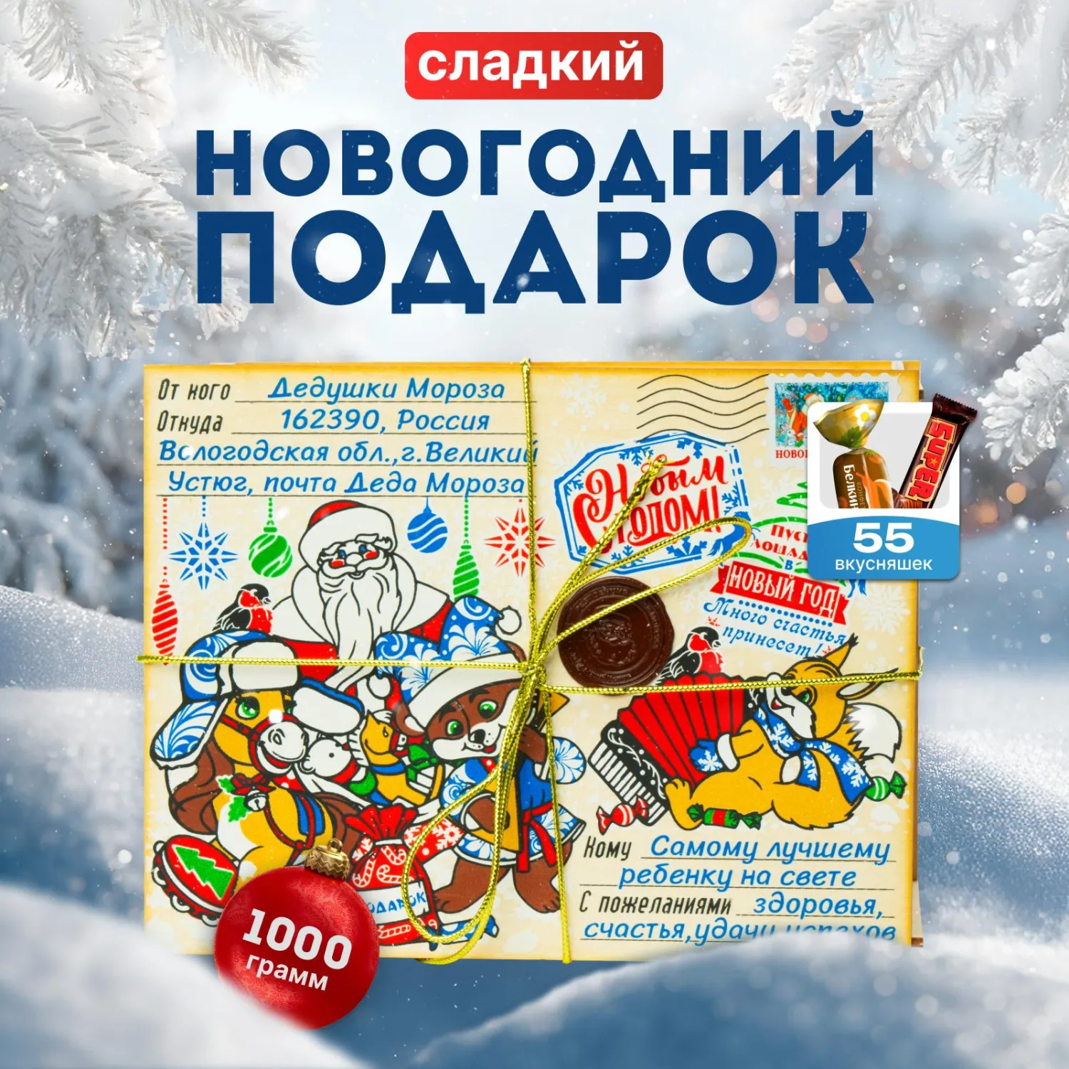 О товаре «Новогодний сладкий подарок Посылка из леса Фанера 1000 грамм, K074»