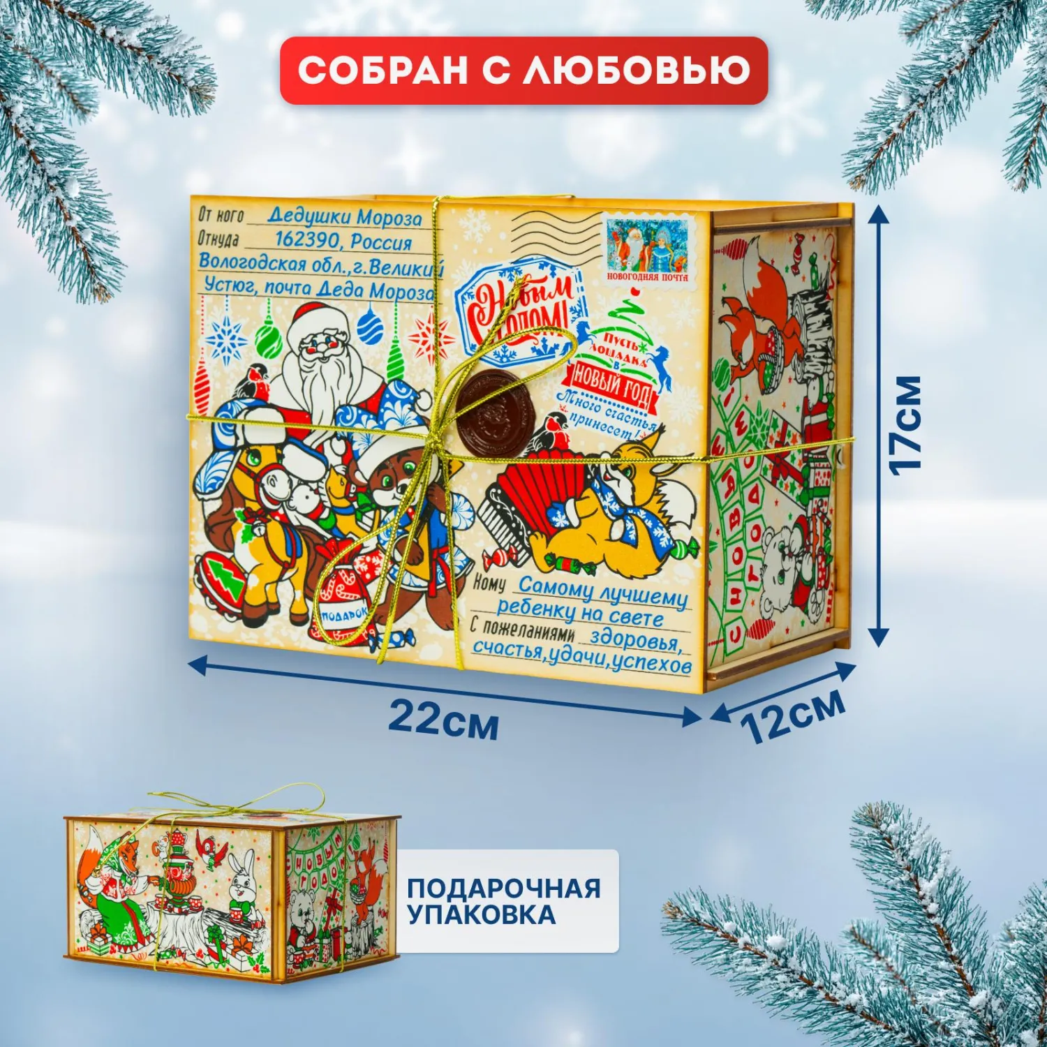 Новогодний сладкий подарок Посылка из леса Фанера 1000 грамм, K074