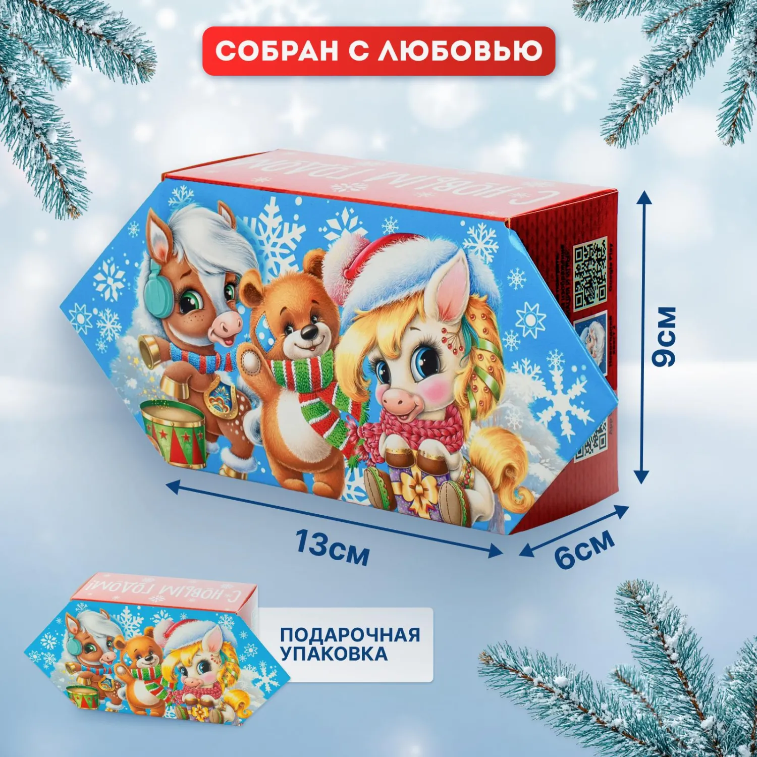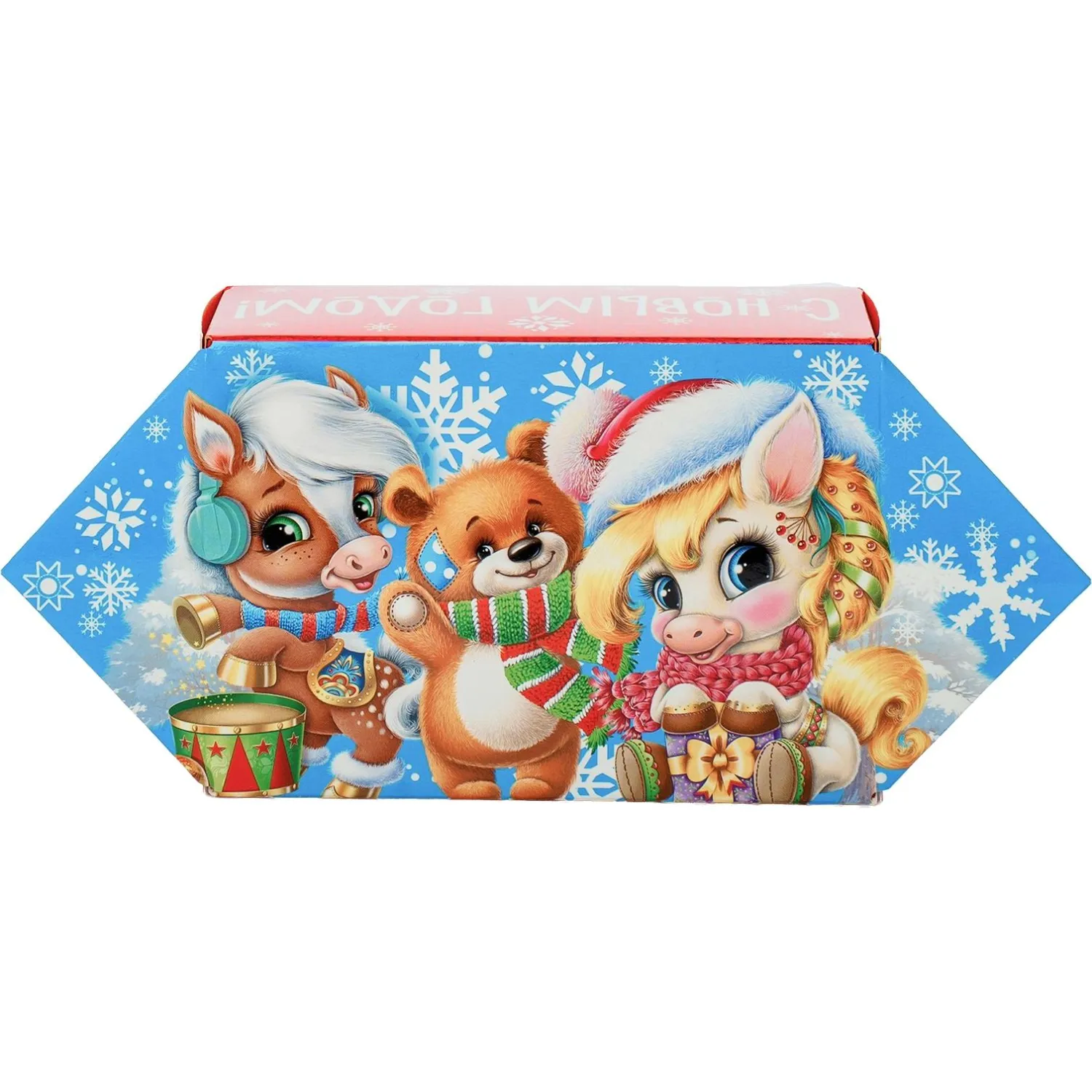 Новогодний сладкий подарок «Праздник с мишкой» — яркая коробка в форме конфеты, наполненная вкусными сладостями, которые обожают дети. Идеальный подарок, чтобы создать волшебную атмосферу праздника.