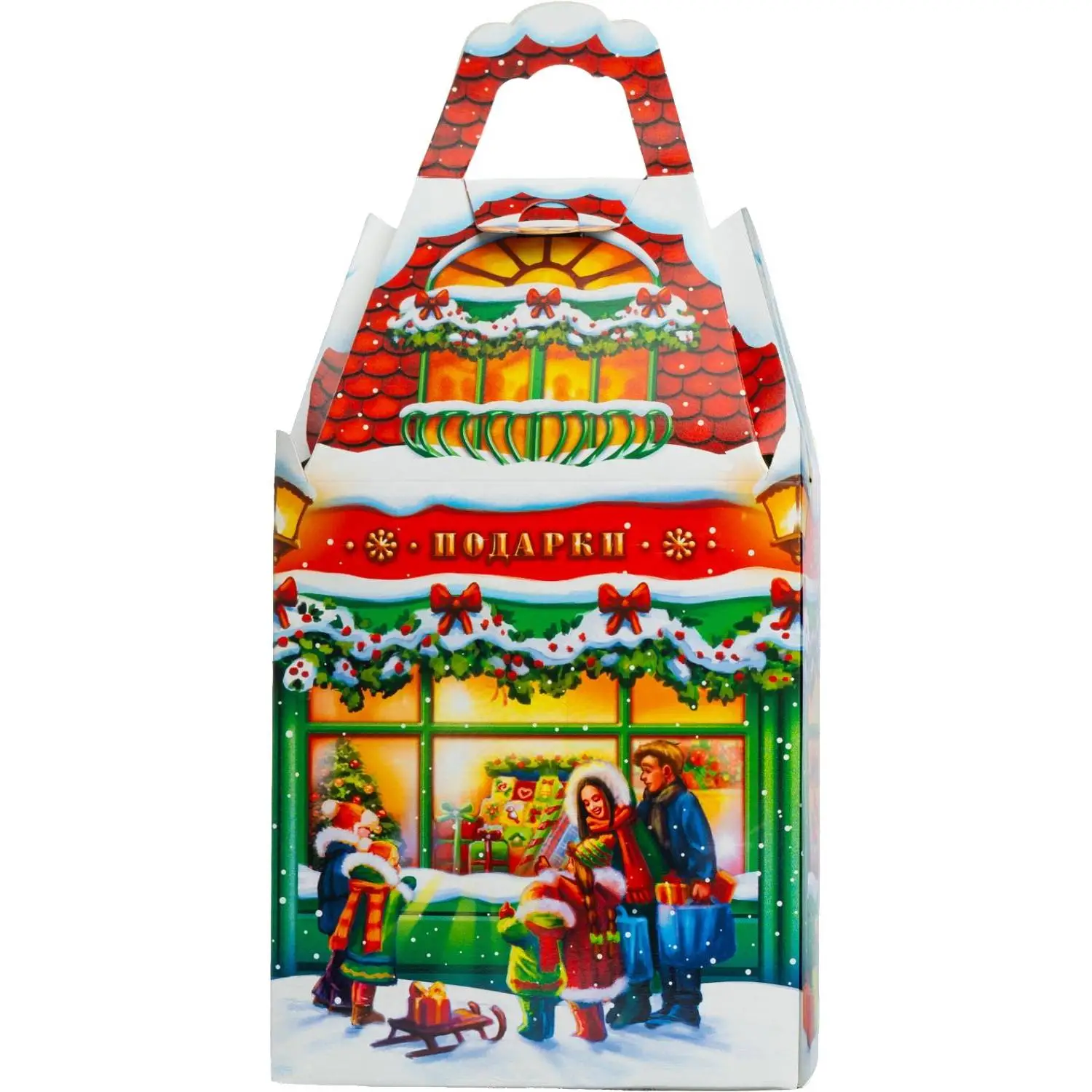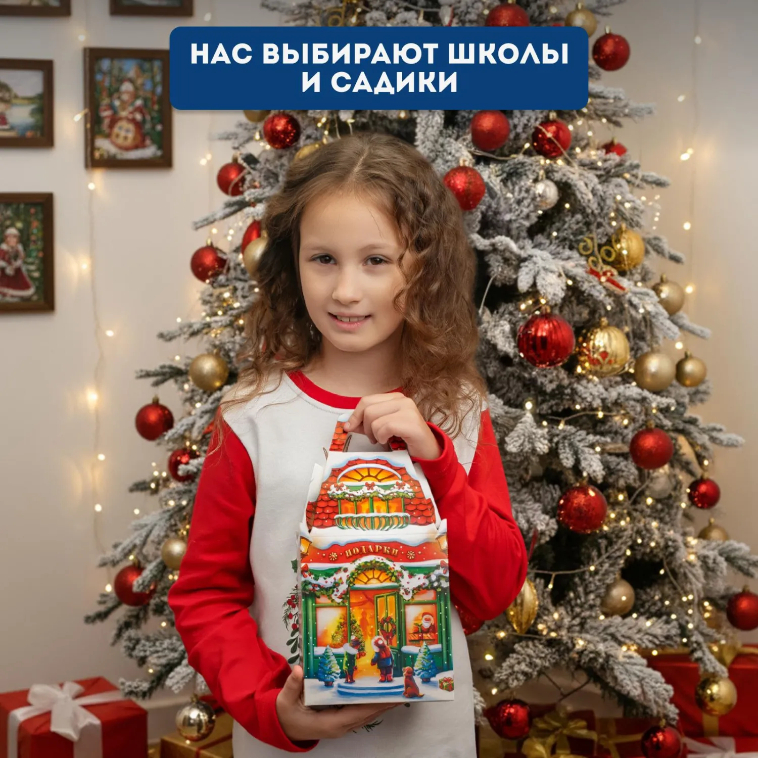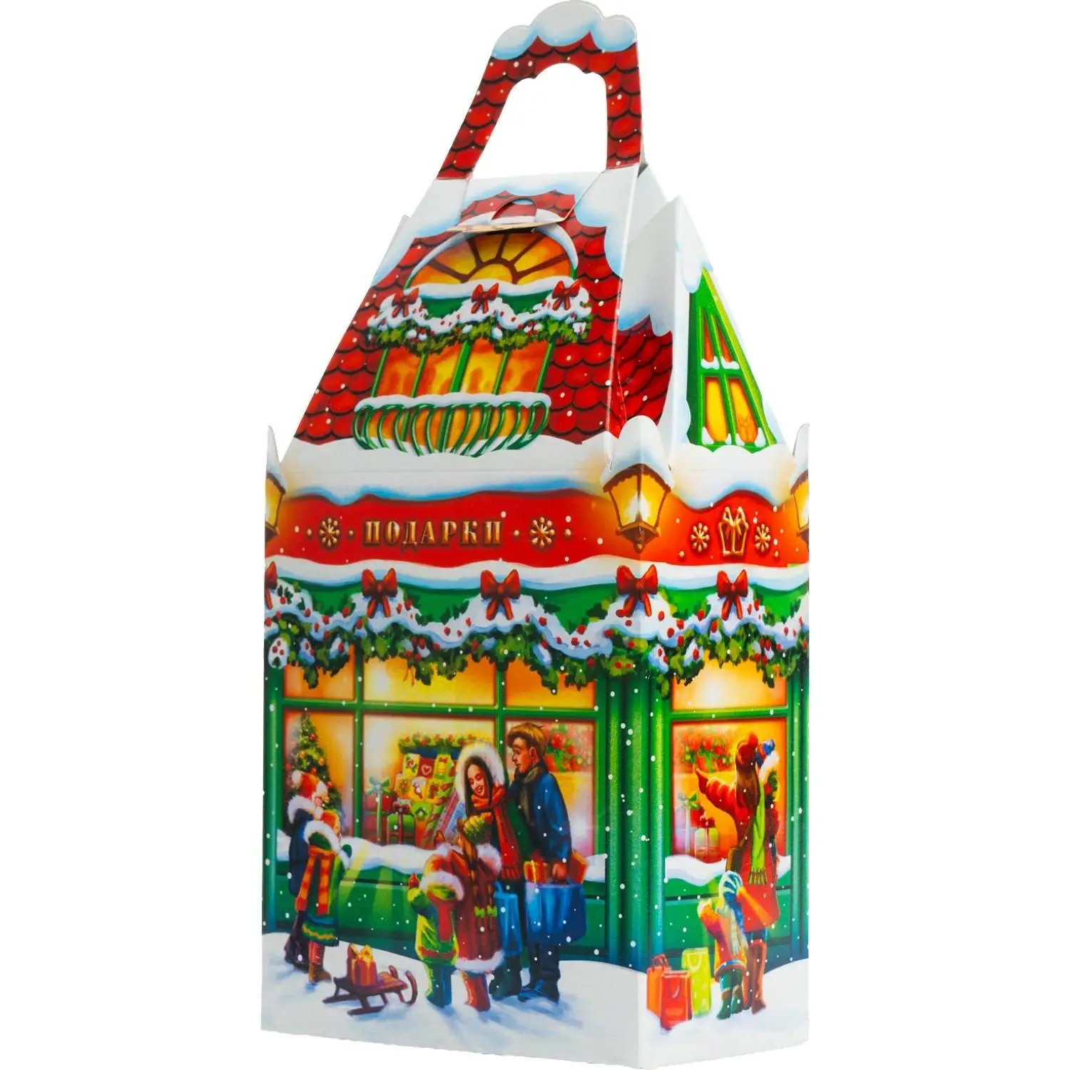 Новогодний сладкий подарок «Сладкий сувенир» — яркая и стильная картонная коробка в форме уютного домика — настоящий символ домашнего тепла и новогоднего волшебства! Оригинальная и удобная упаковка понравится детям и станет запоминающимся новогодним сюрпризом.