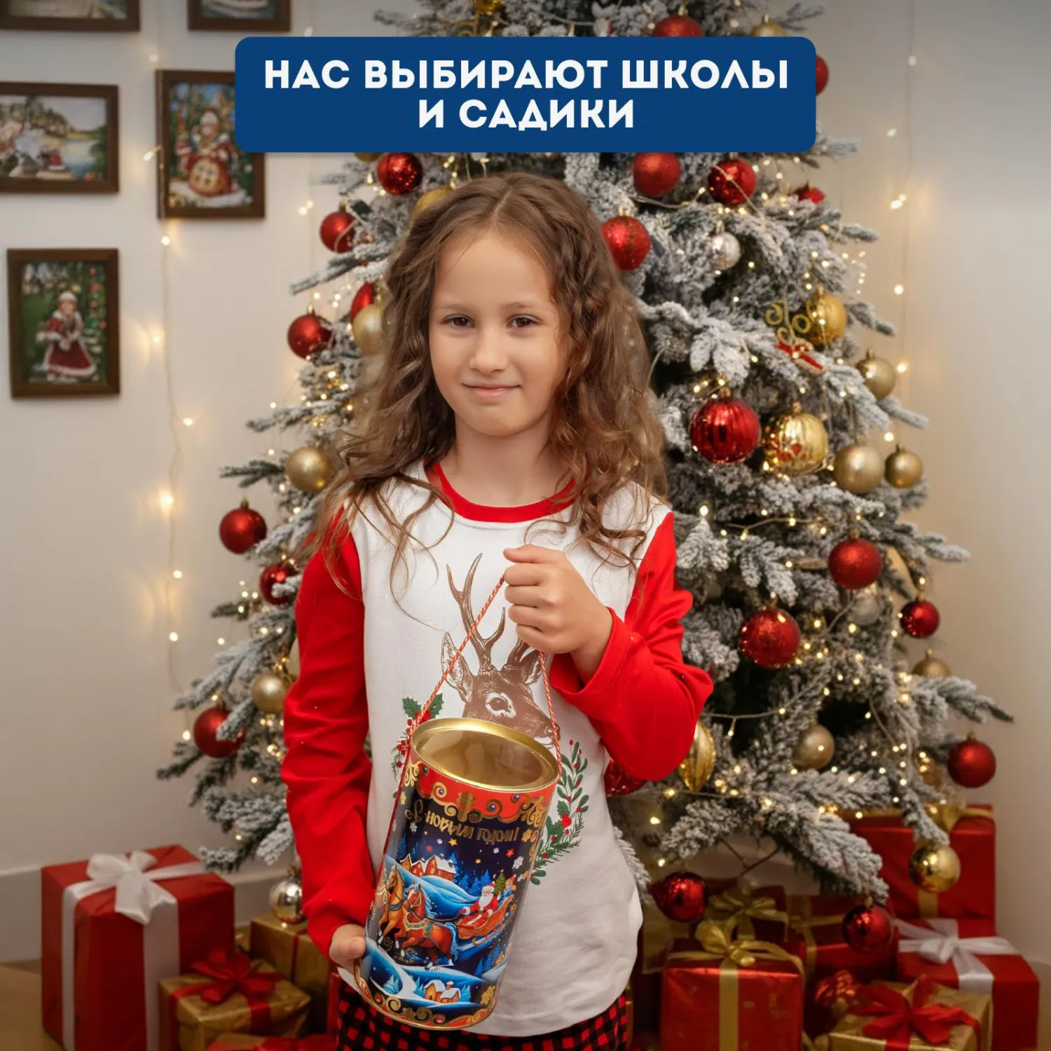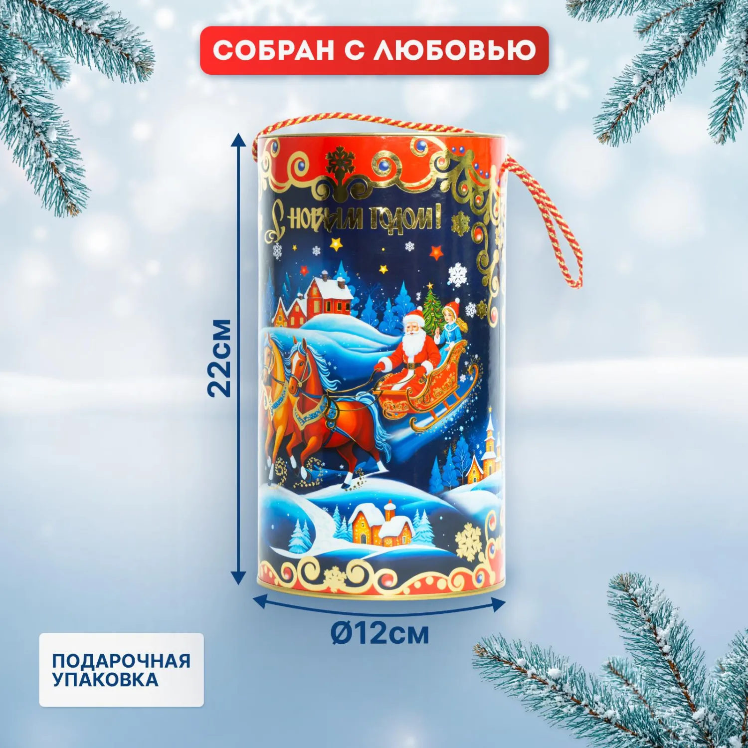 Новогодний сладкий подарок «Тройка» в удобной тубе и сладостями, которые дети любят больше всего, чтобы создать незабываемую новогоднюю сказку!