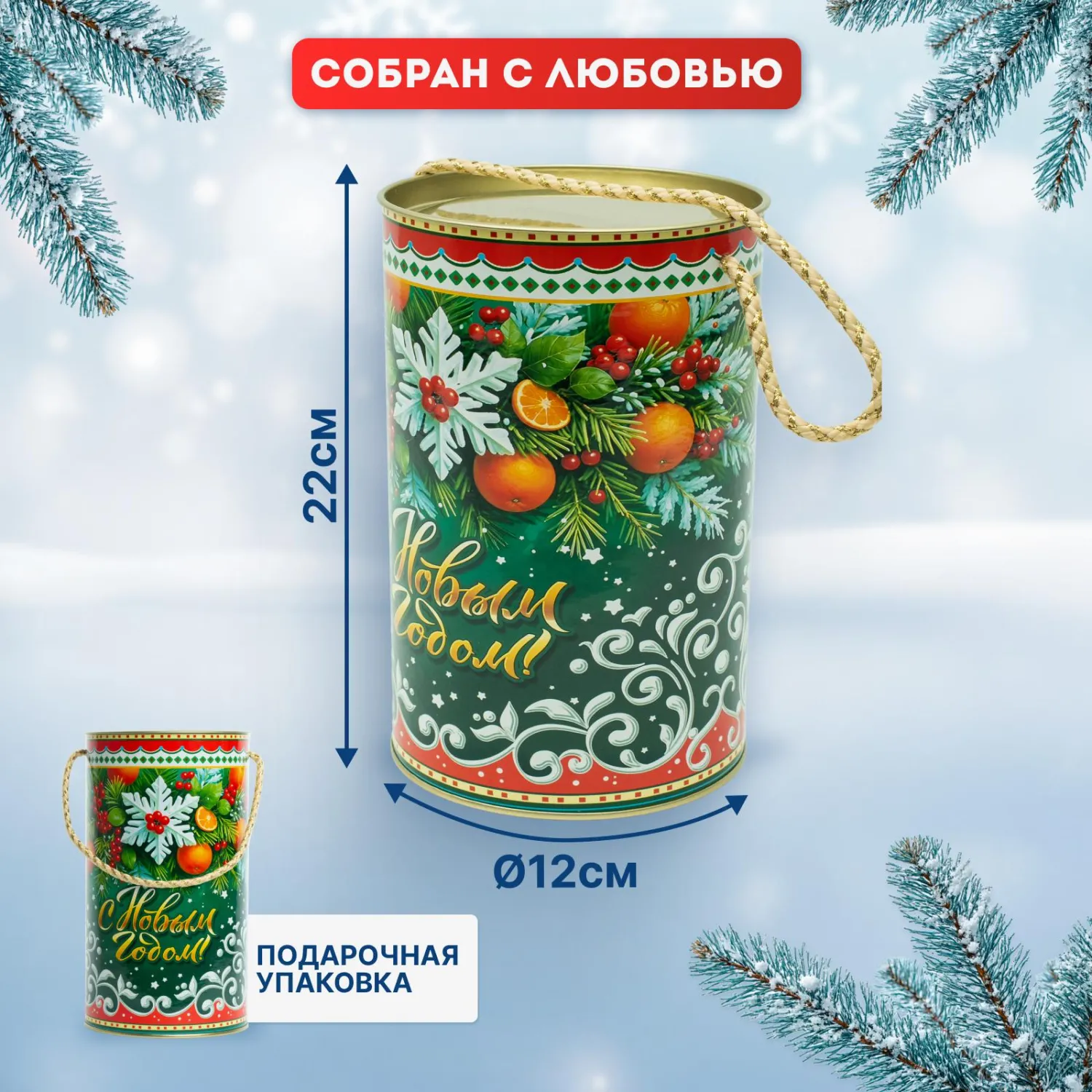 О товаре «Новогодний сладкий подарок Зимнее настроение Туба 1000 грамм, K096»