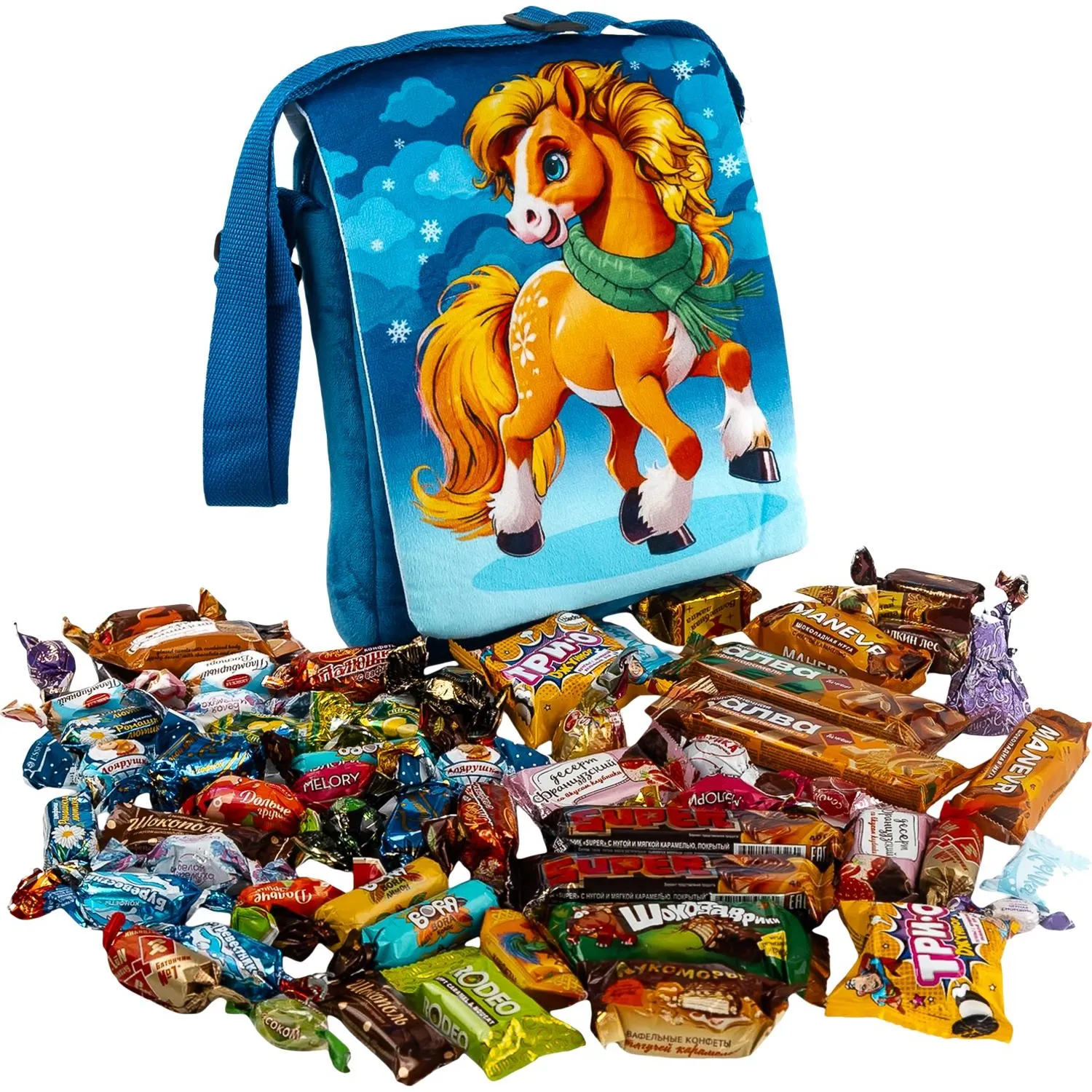 Новогодний сладкий подарок «Зимняя прогулка» — станет верным спутником вашего ребёнка: мягкая и удобная, она вмещает самые разные мелочи для занятий и игр. А внутри вас ждёт сладкий сюрприз — шоколад и изысканные конфеты от фабрик КДВ, Эссен и Объединённых кондитеров. Упаковка выполнена в виде сумки-планшета, имеет ручки для переноски, что делает её удобной для использования как в качестве подарка, так и в повседневной жизни.