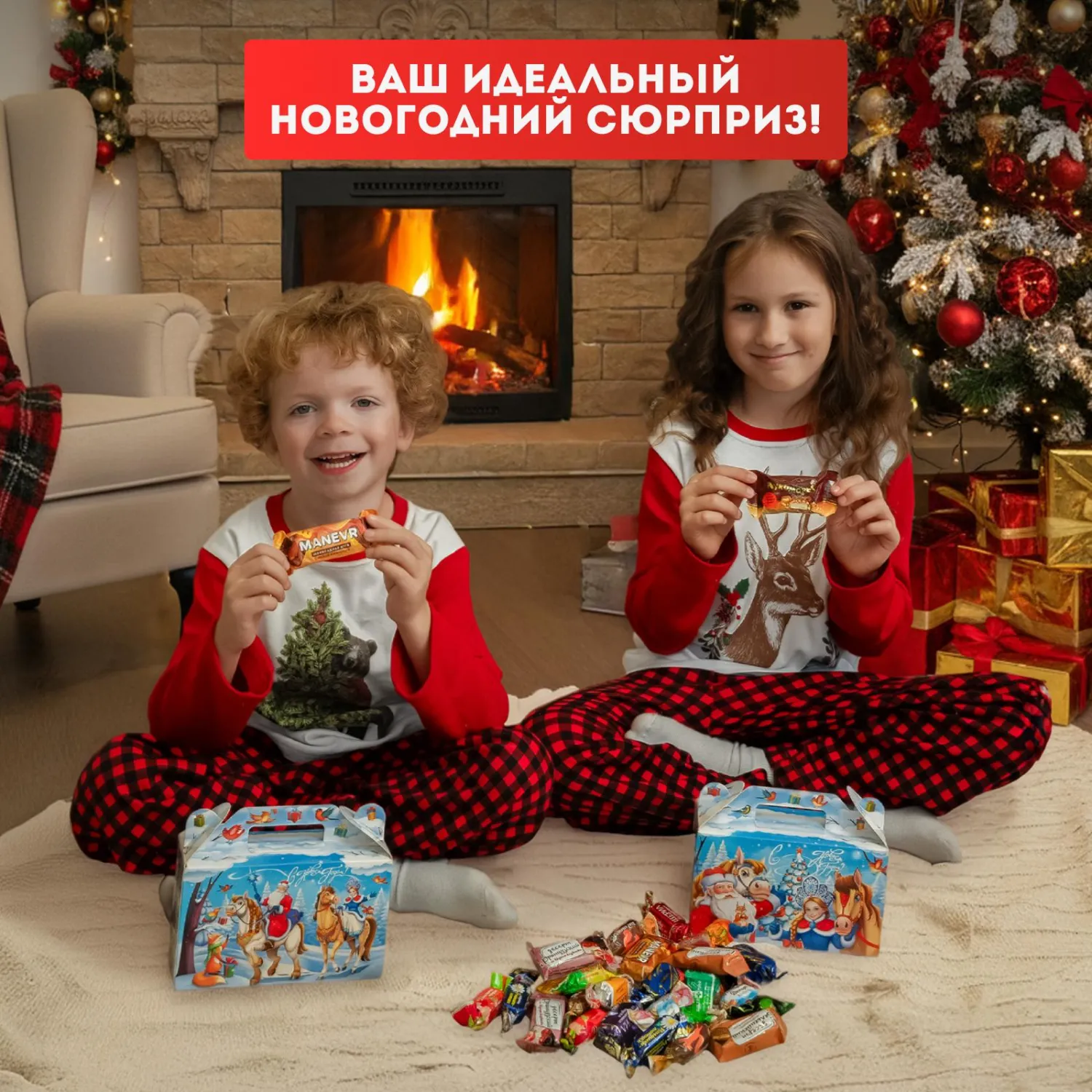 Новогодний сладкий подарок ’Зимняя прогулка’ - сладости в яркой коробке, которая станет настоящим украшением новогоднего праздника. Идеальный выбор для детей.