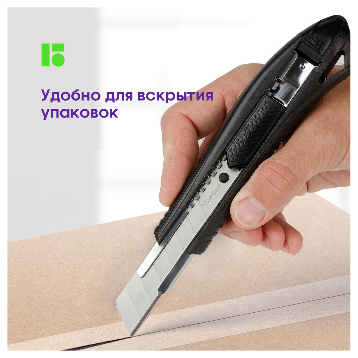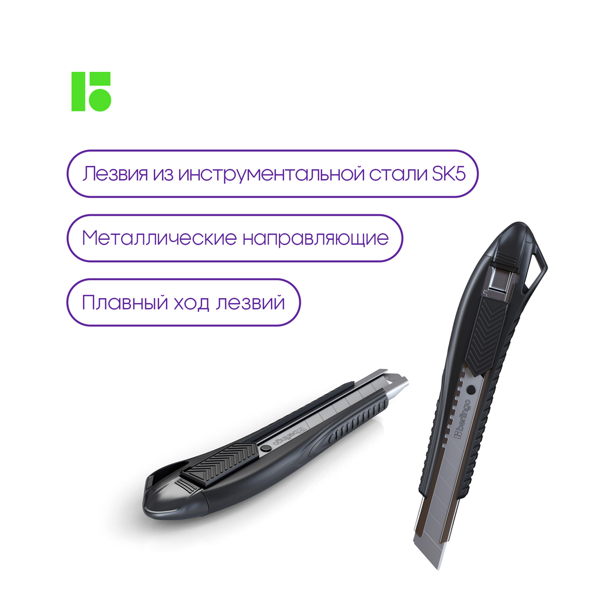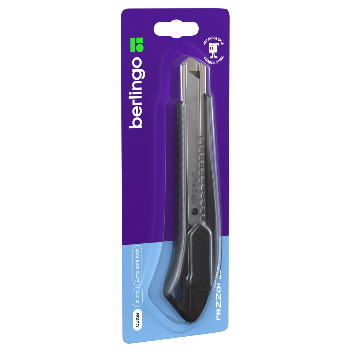 О товаре «Нож канцелярский 18мм Berlingo "Razzor 200", auto-lock, металл. направл., черный, европодвес»