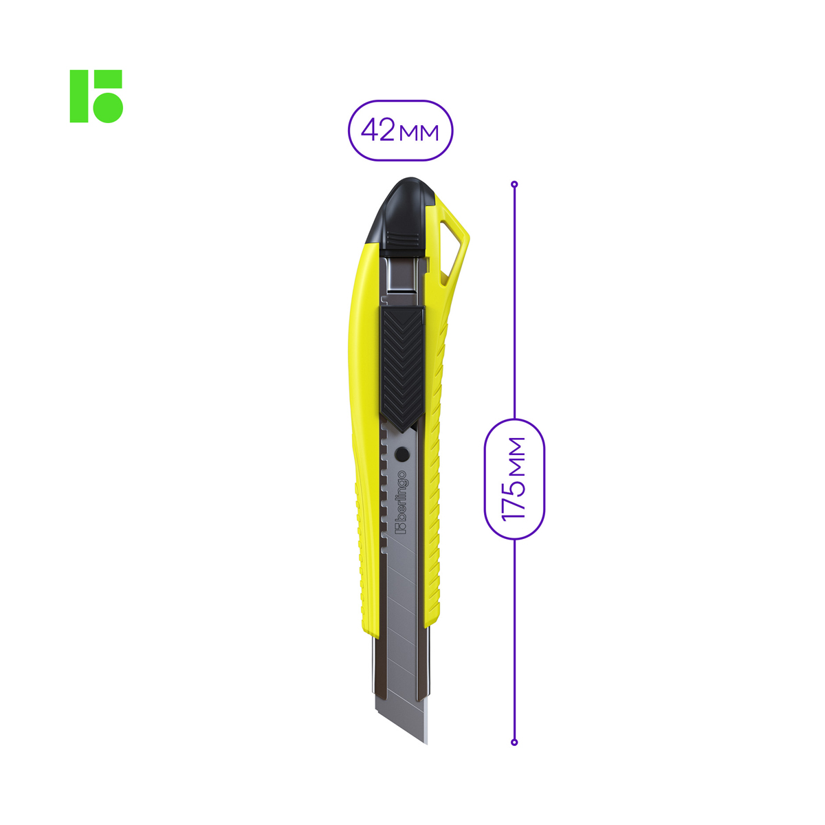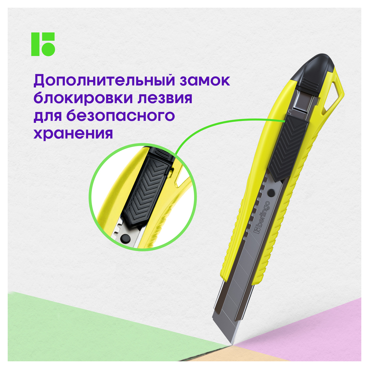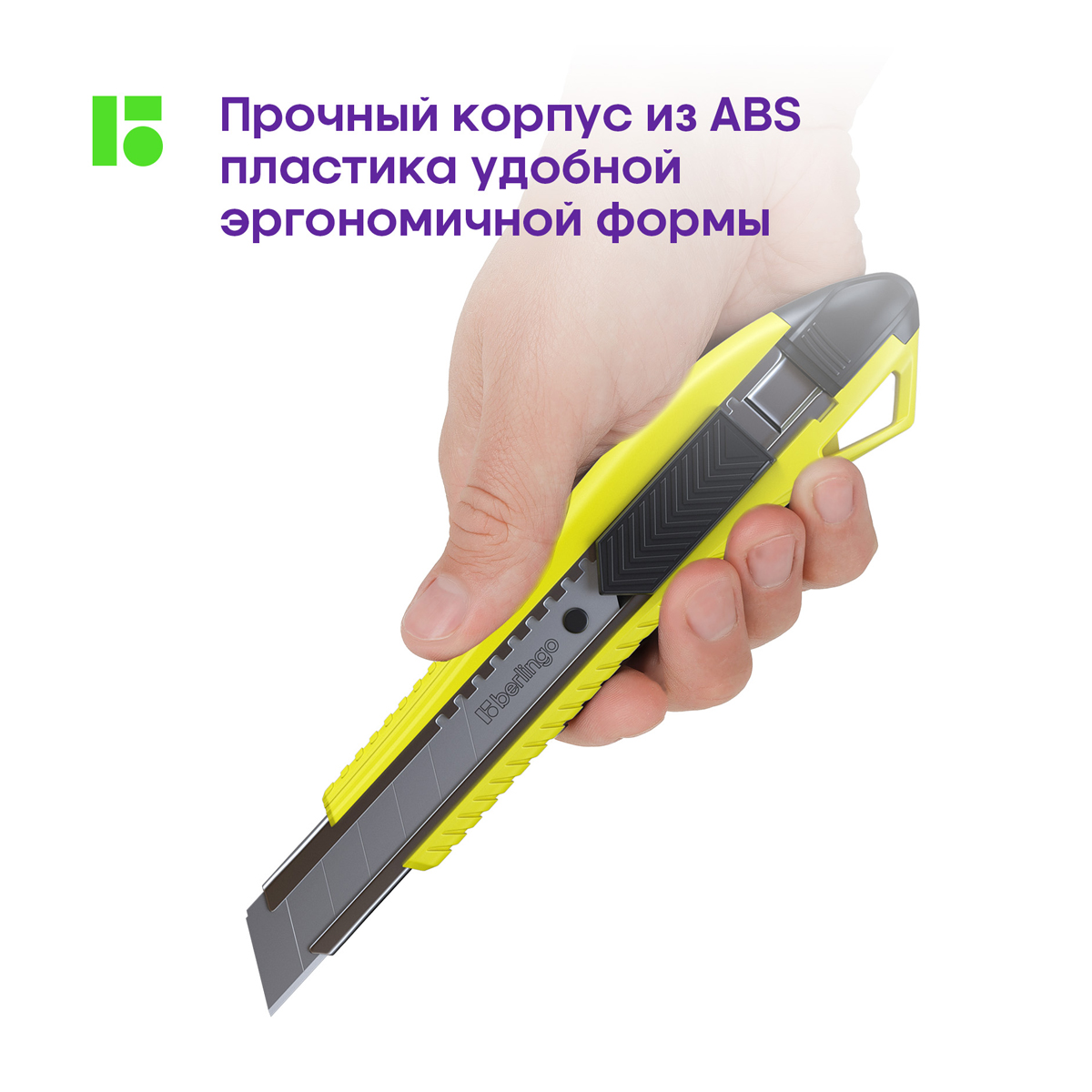 О товаре «Нож канцелярский 18мм Berlingo "Razzor 200", auto-lock, металл. направл., желтый, европодвес»