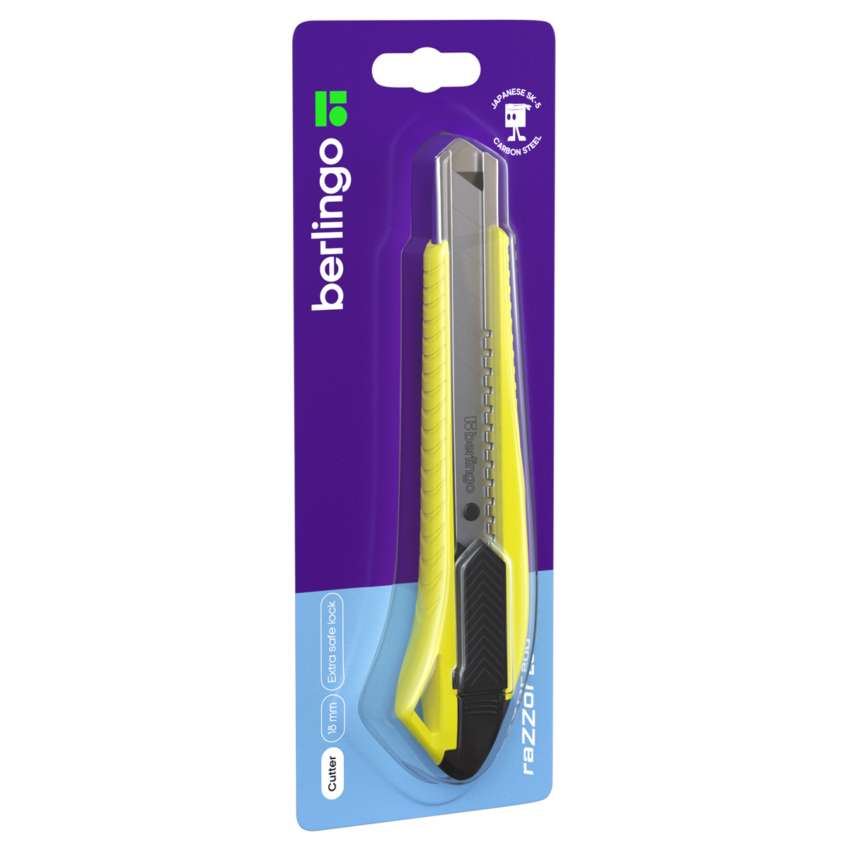 Нож канцелярский 18мм Berlingo "Razzor 200", auto-lock, металл. направл., желтый, европодвес