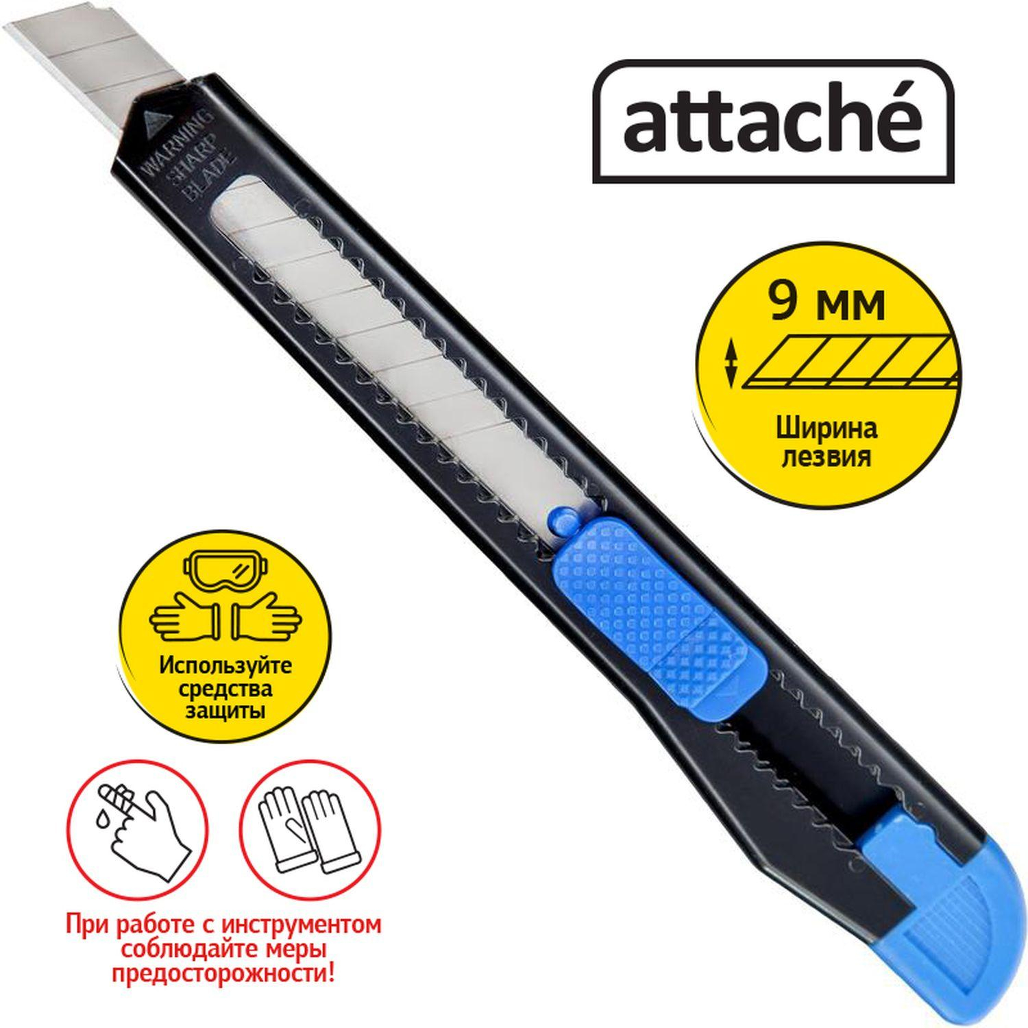 Нож канцелярский Attache с фиксатором черный корпус (ширина лезвия 9 мм)