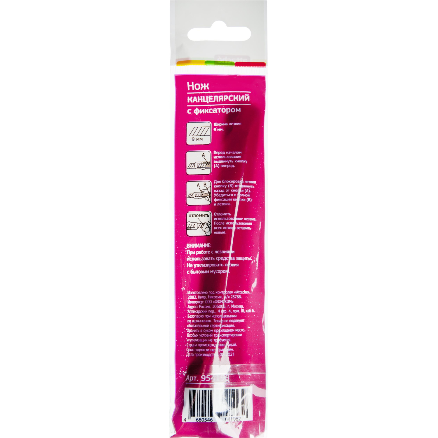 Нож канцелярский Attache с сегментированным отламывающимся лезвием. Данная экономичная модель ножа оптимальна для резки бумаги, распечатывания корреспонденции и посылок. Товар поставляется в нескольких вариантах цвета/дизайна (без возможности выбора).
