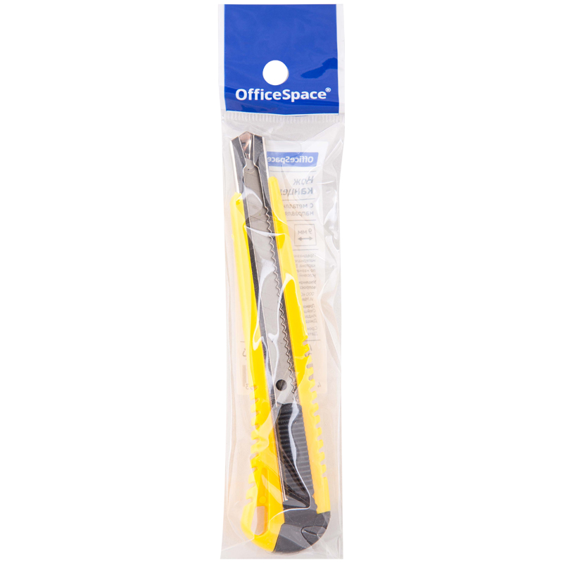 Нож канцелярский 9мм OfficeSpace, усиленный, с фиксатором, металл. направляющие, ассорти, европодвес