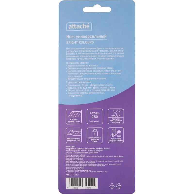 О товаре «Нож универсальный Attache 18 мм (SX33)»