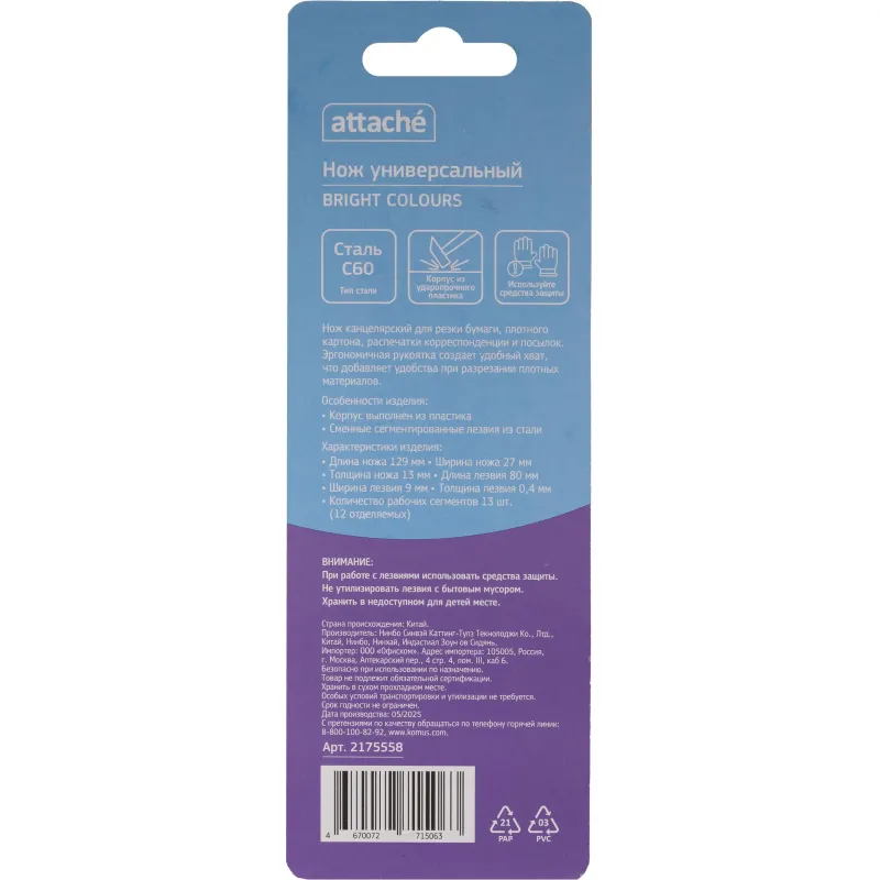 О товаре «Нож универсальный Attache 9 мм пластиковый син»