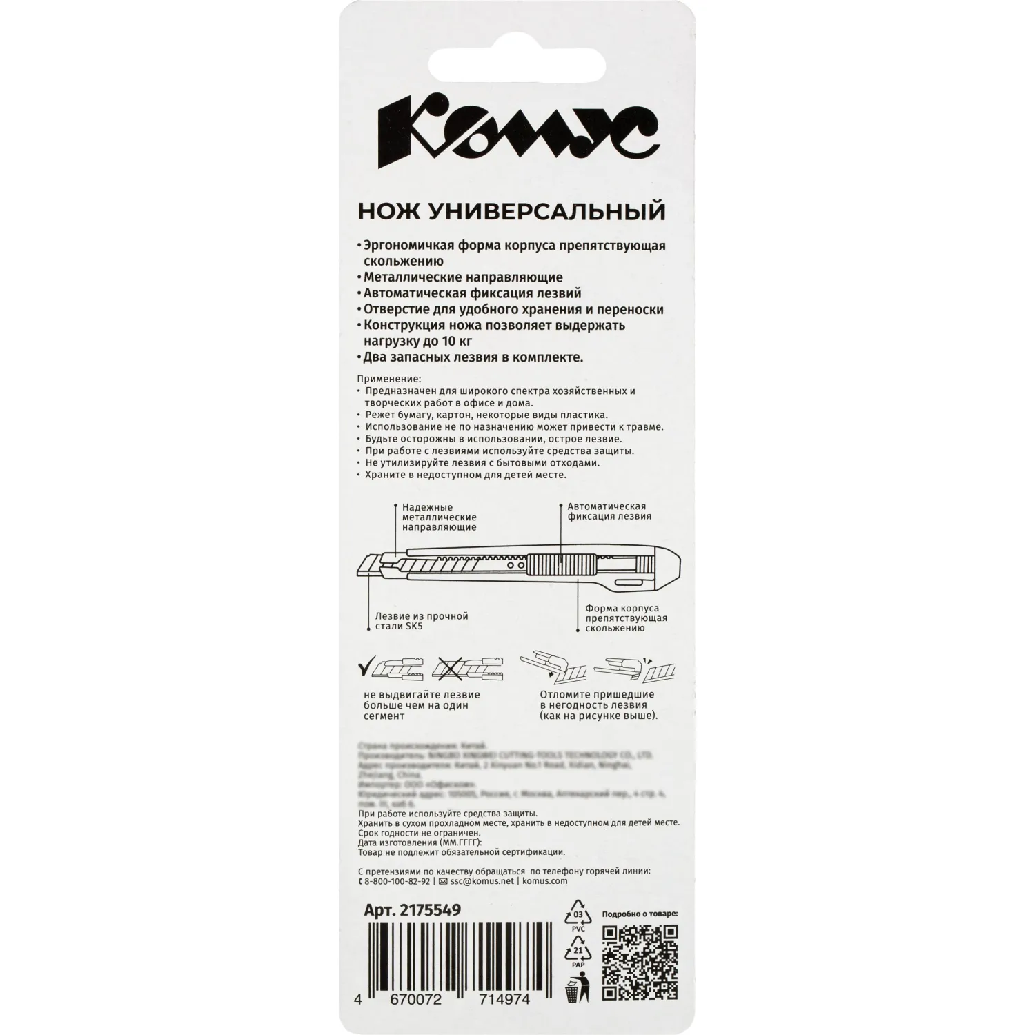 О товаре «Нож универсальный Комус 9 мм пластиковый мет направл»