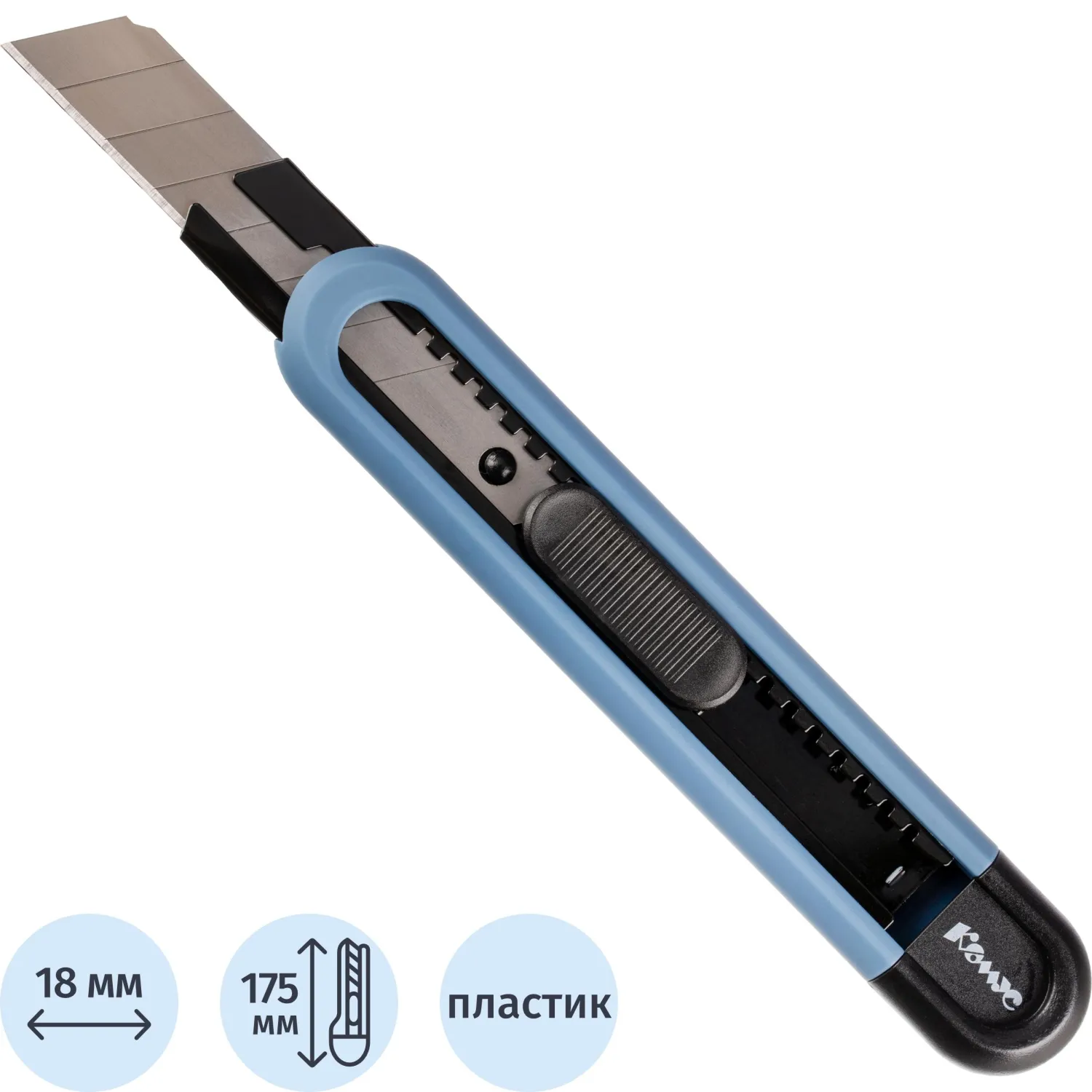 О товаре «Нож универсальный КОМУС Denim 18 мм пластиковый мет направл.SX37N-DFT»
