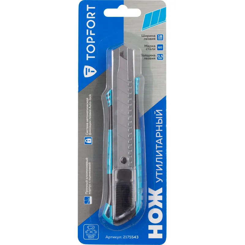Нож универсальный TOPFORT 18 мм алюминиевый со вставками мет направл
