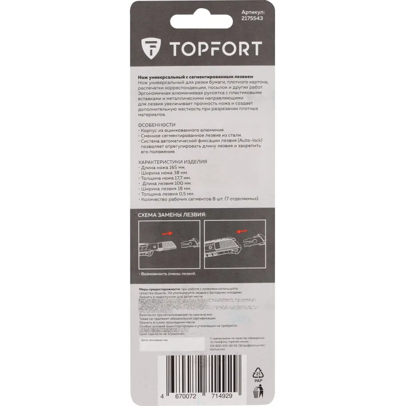 Нож универсальный TOPFORT 18 мм (SX9023)