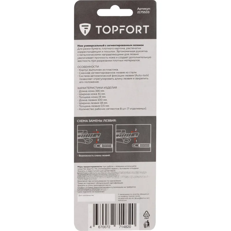 Нож универсальный TOPFORT 18 мм (SX770N)