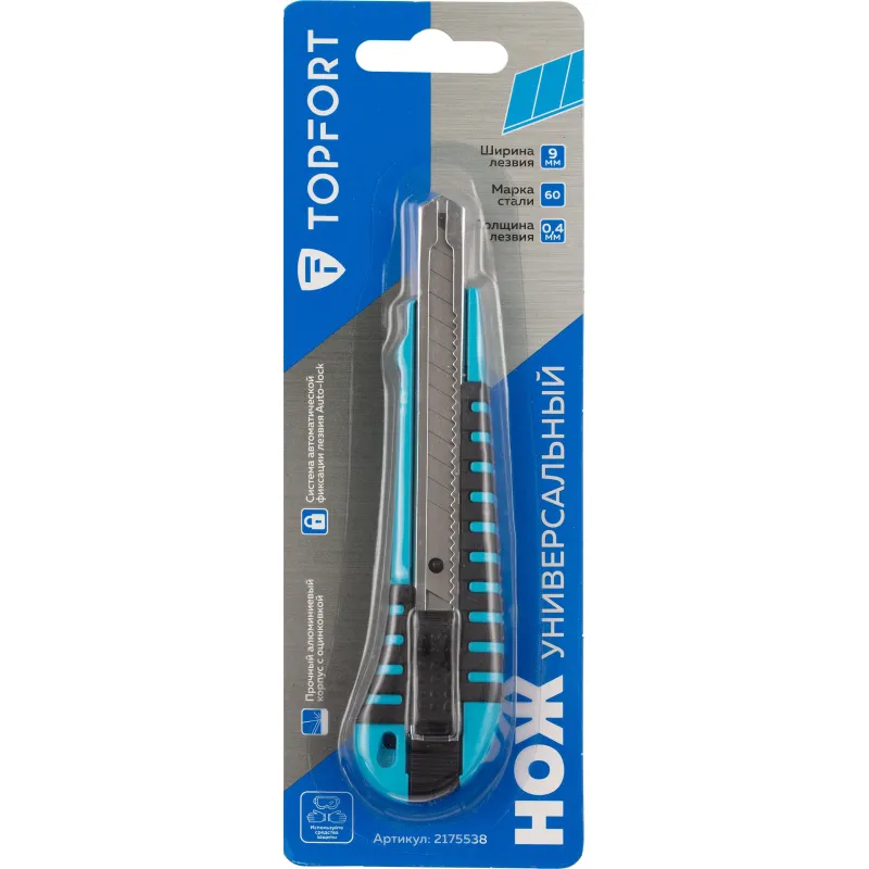 Нож универсальный TOPFORT 9 мм алюминиевый мет направл