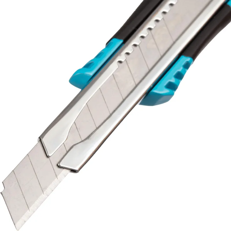 Нож универстальный для резки бумаги, плотного картона, распечатки корреспонденции, посылок и других работ. Эргономичная алюминиевая рукоятка c пластиковыми вставками и металлическими направляющими для лезвия увеличивают прочность ножа, создают дополнительную жёсткость при разрезании плотных материалов.