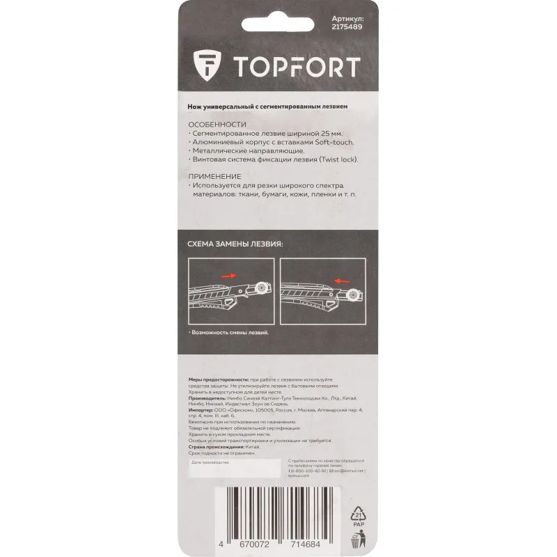 Нож универсальный усиленный TOPFORT SX2500 25 мм (2175489)