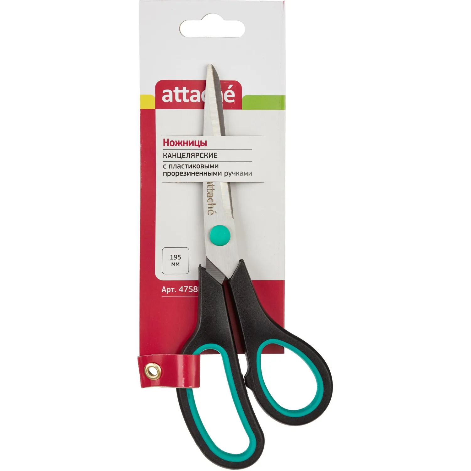 Ножницы 195 мм Attache с пластиковыми прорезиненными анатомическими ручками бирюзового/черного цвета