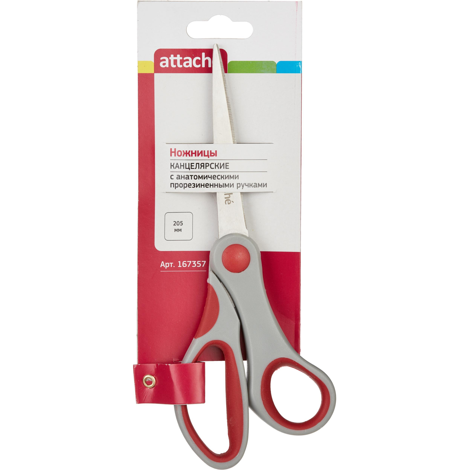 Ножницы 205 мм Attache с пластиковыми прорезиненными анатомическими ручками красного/серого цвета