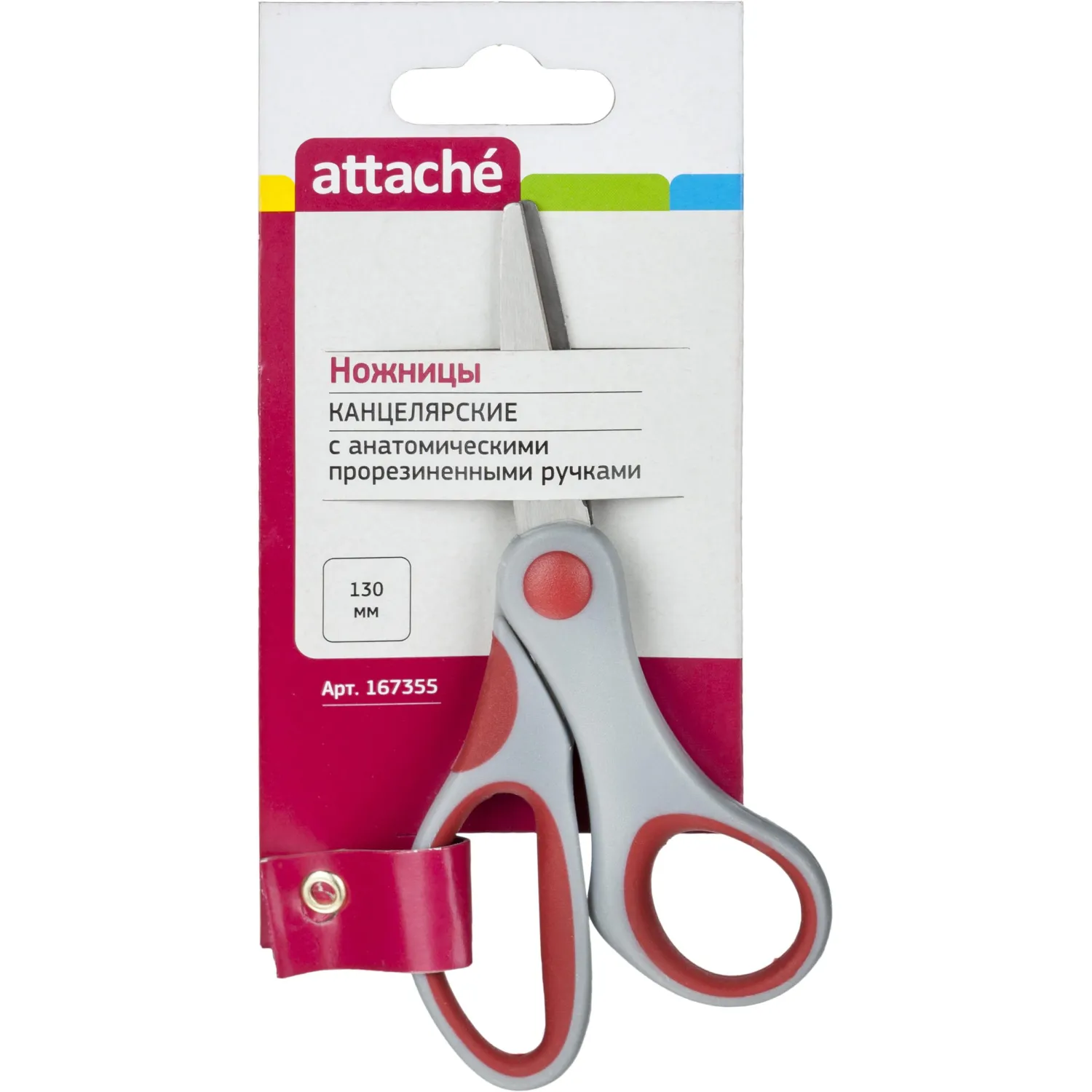 О товаре «Ножницы 130 мм Attache с пластиковыми прорезиненными ручками серого/красного цвета»