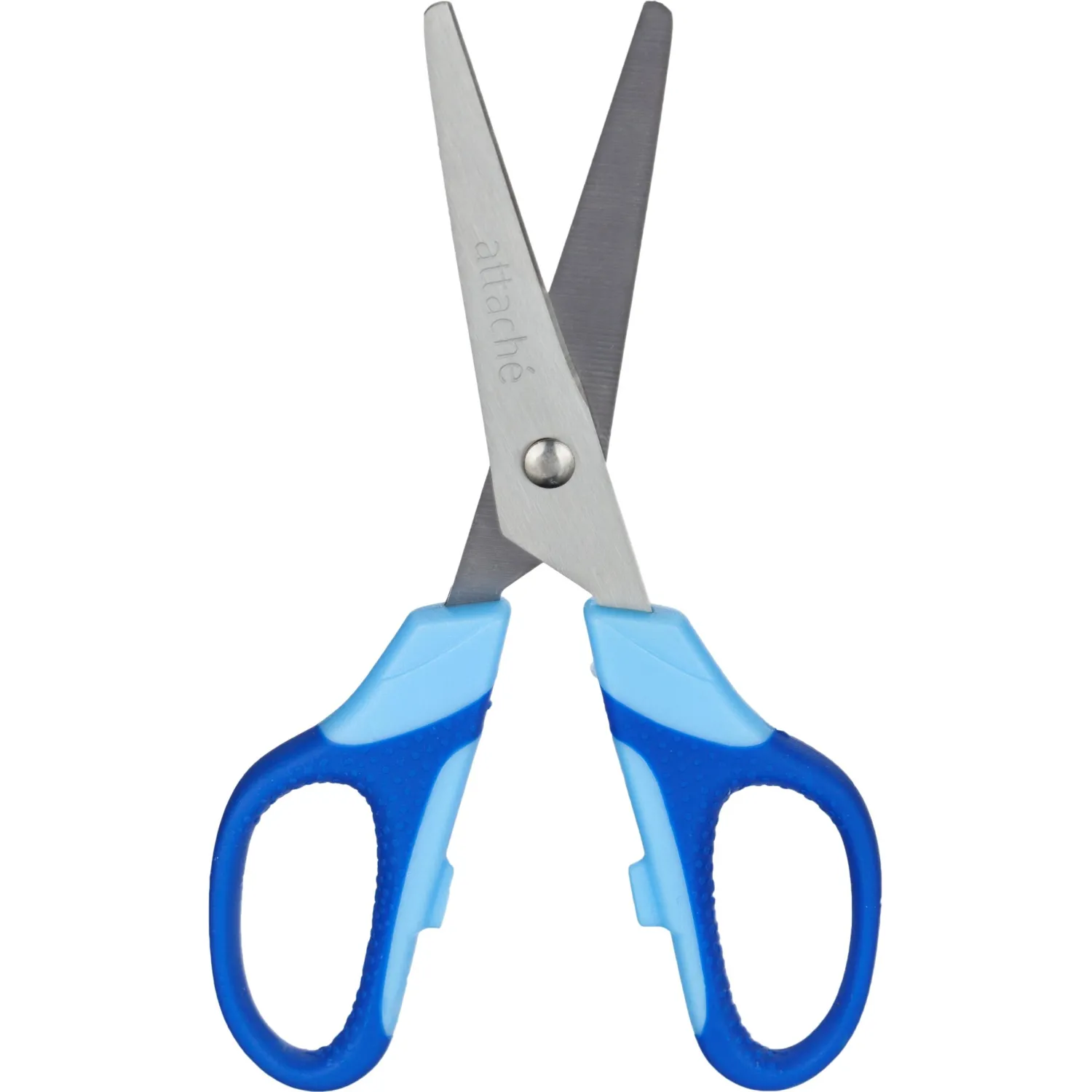 О товаре «Ножницы Attache Ergo&Soft 140 мм симметричные с пластиковыми прорезиненными ручками синего/голубого цвета»