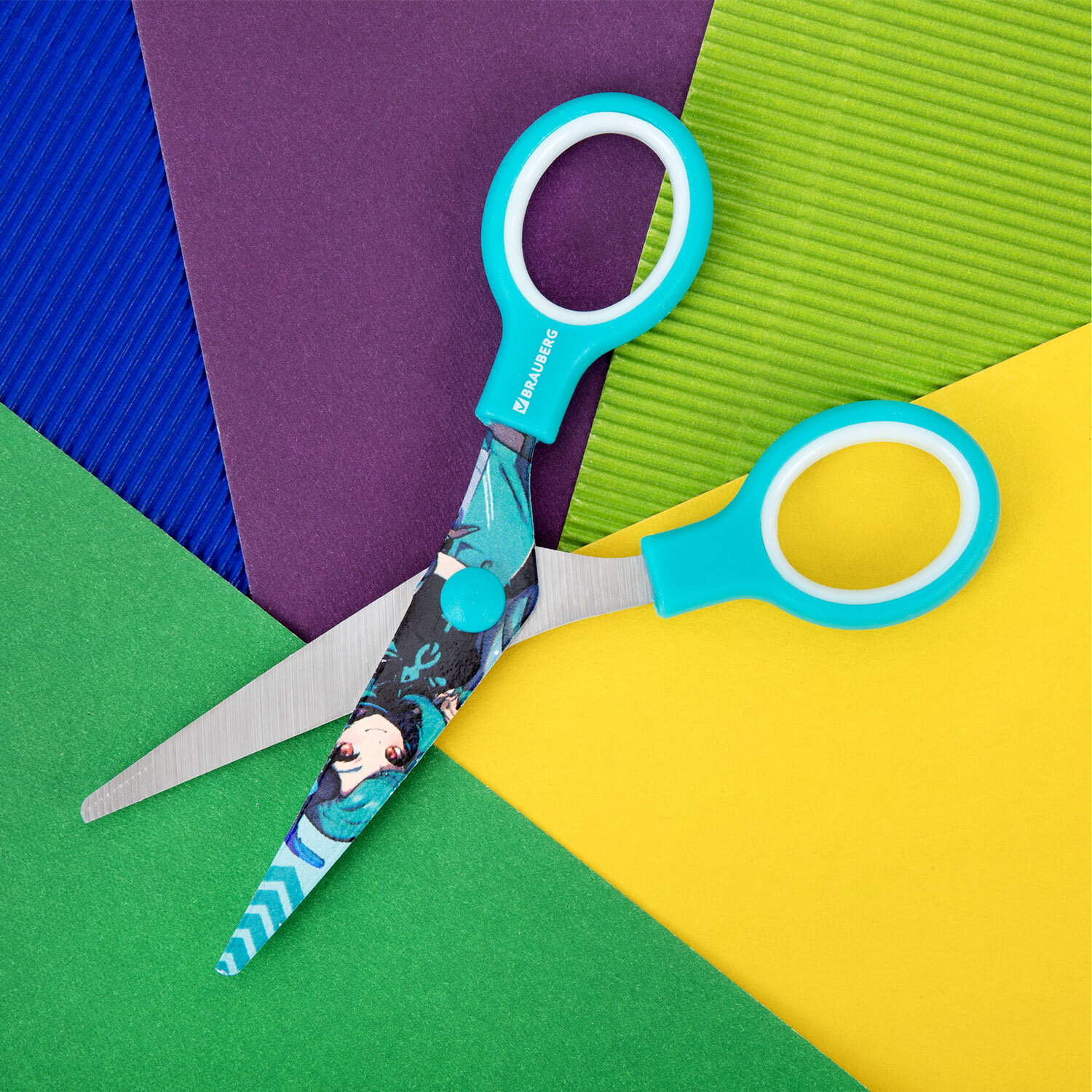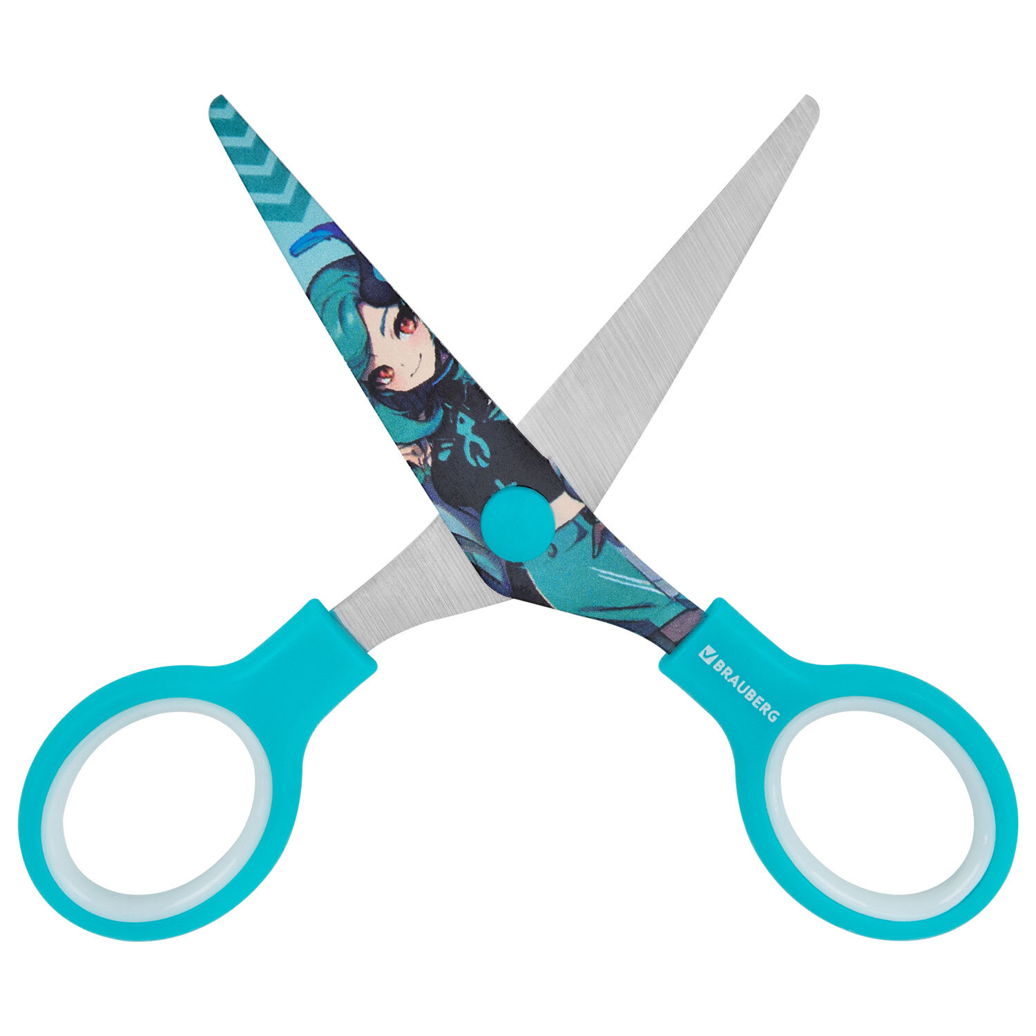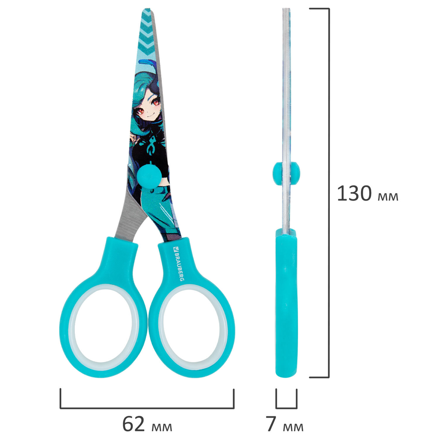 Ножницы 130 мм, мятные, с цветной печатью "Аниме", BRAUBERG ANIME, 238956