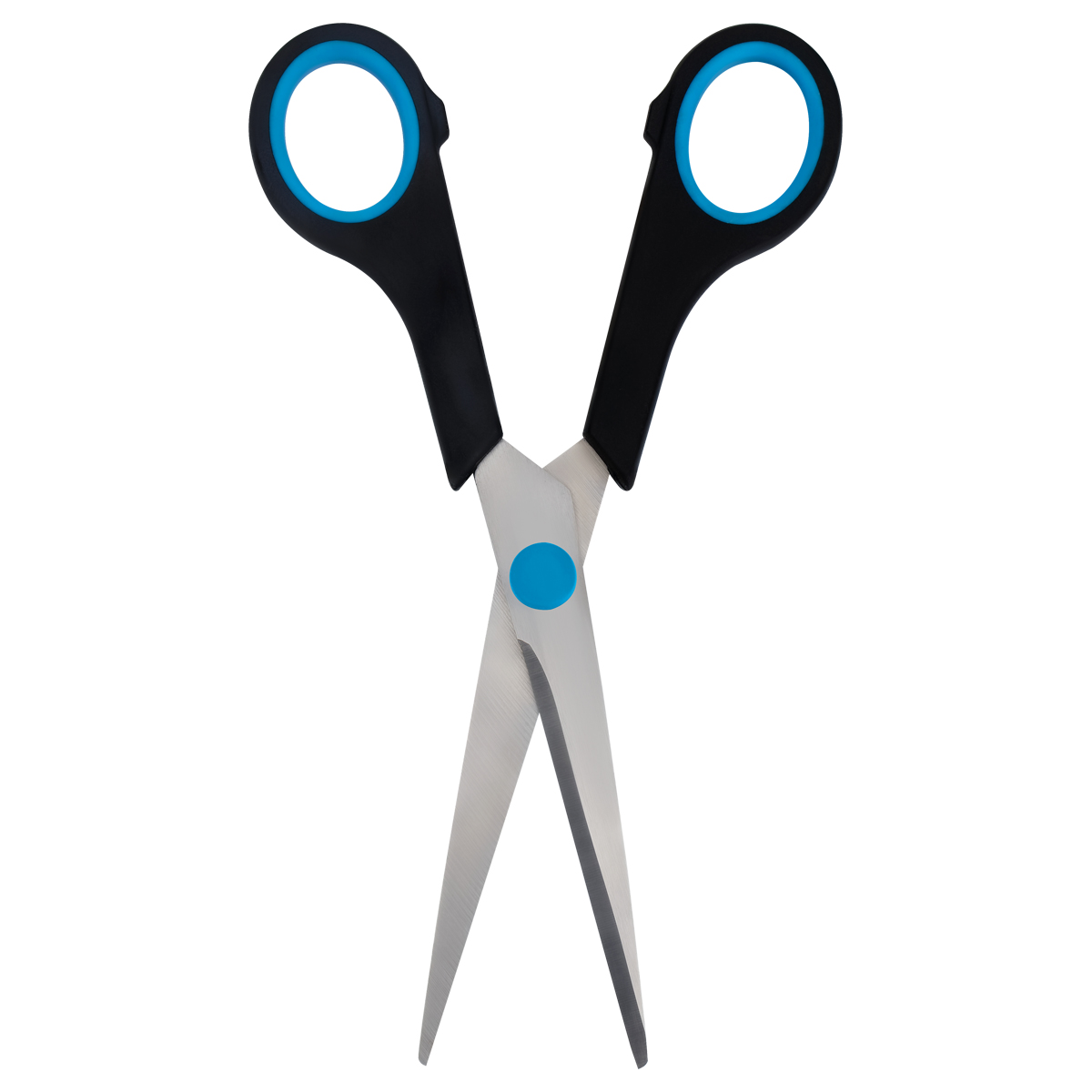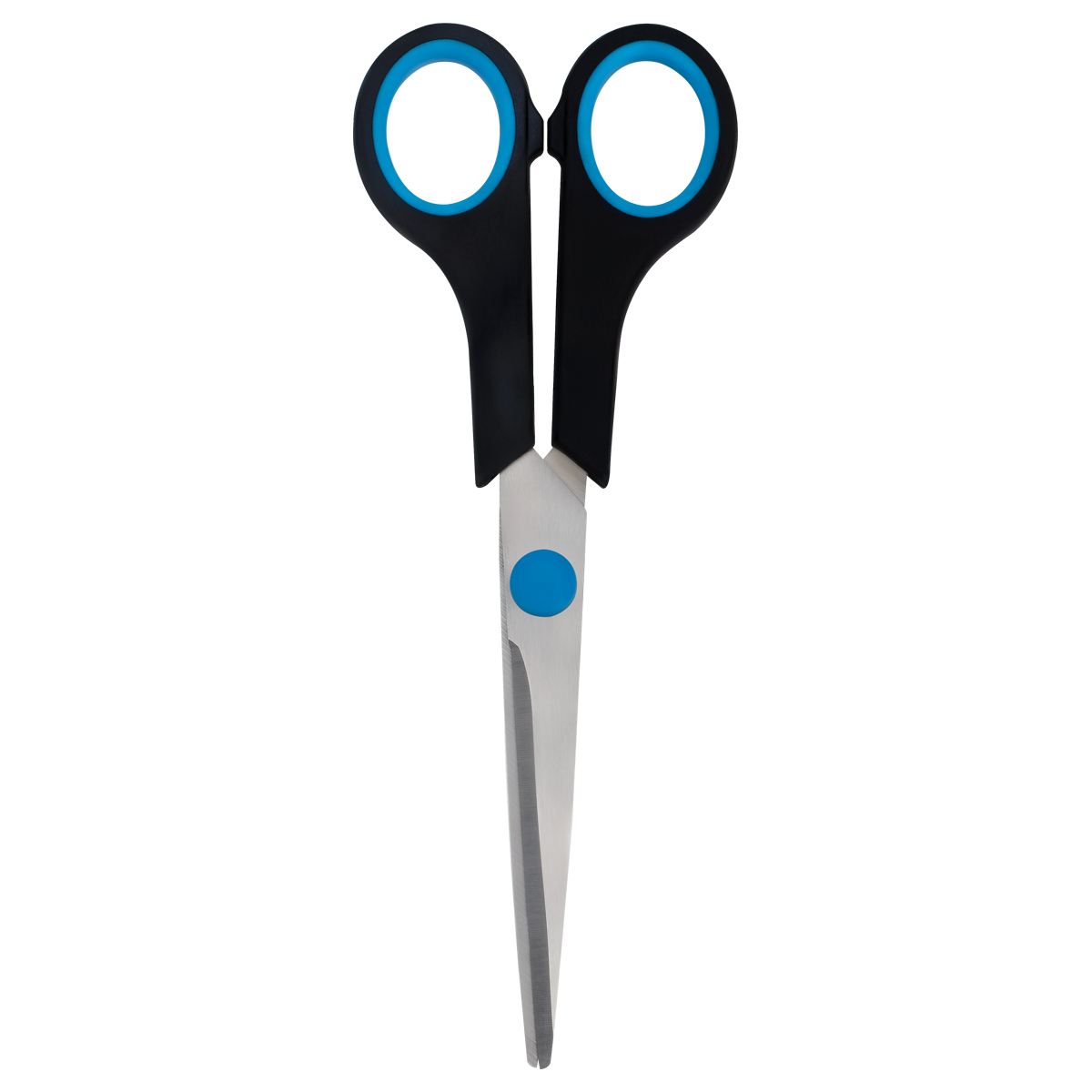 О товаре «Ножницы OfficeSpace 17,1см, черные с синими вставками, ПВХ чехол с европодвесом»