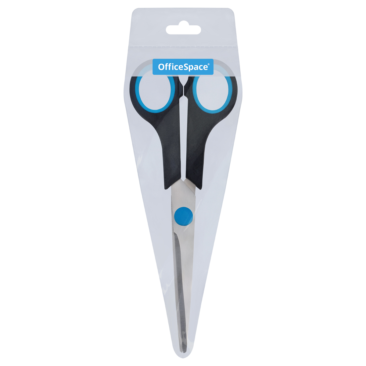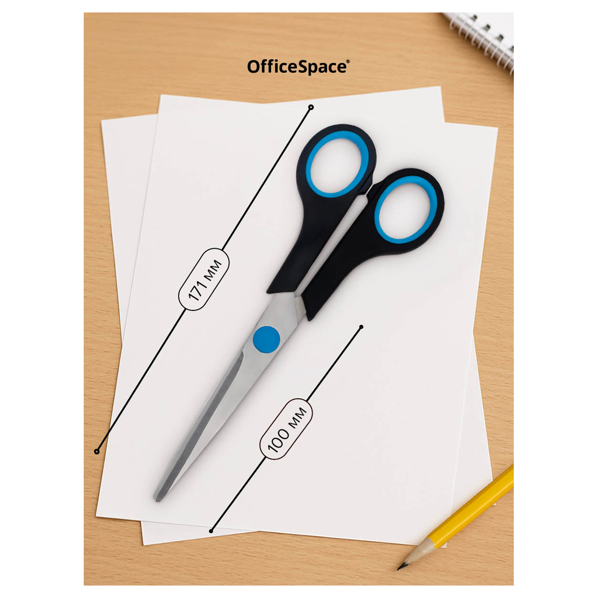 Ножницы OfficeSpace 17,1см, черные с синими вставками, ПВХ чехол с европодвесом