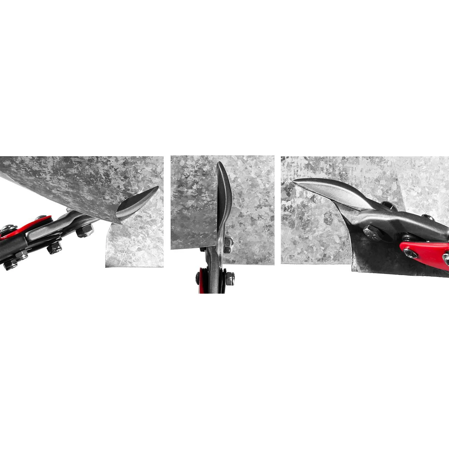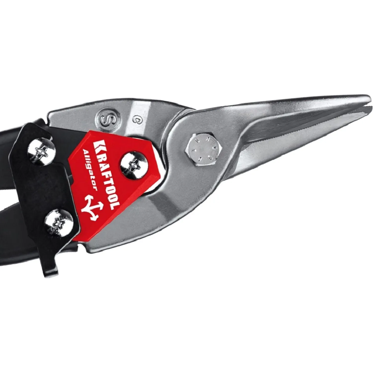 Ножницы по металлу Kraftool 2328-S, применяются для прямой и фигурной резки (в правую или левую сторону) листовых материалов из стали повышенной твердости, нержавеющей стали, цветных металлов. Изготовлены из хромомолибденовой стали. Индукционная закалка лезвий до твердости 62 — 65 HRC. Насечки на режущих кромках препятствуют соскальзыванию материала в процессе реза. Инновационный фиксатор: легкое снятие фиксации сжатием рукояток, фиксация одной рукой. Высокомощный двухрычажный механизм обеспечивает эффективный точный рез. Увеличенный зев облегчает рез твердой стали без заусенцев. Двухкомпонентные рукоятки из резины обеспечивают удобство и надежный захват при работе.