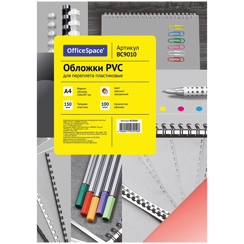 О товаре «Обложка А4 OfficeSpace "PVC" 150мкм, прозрачный красный пластик, 100л.»
