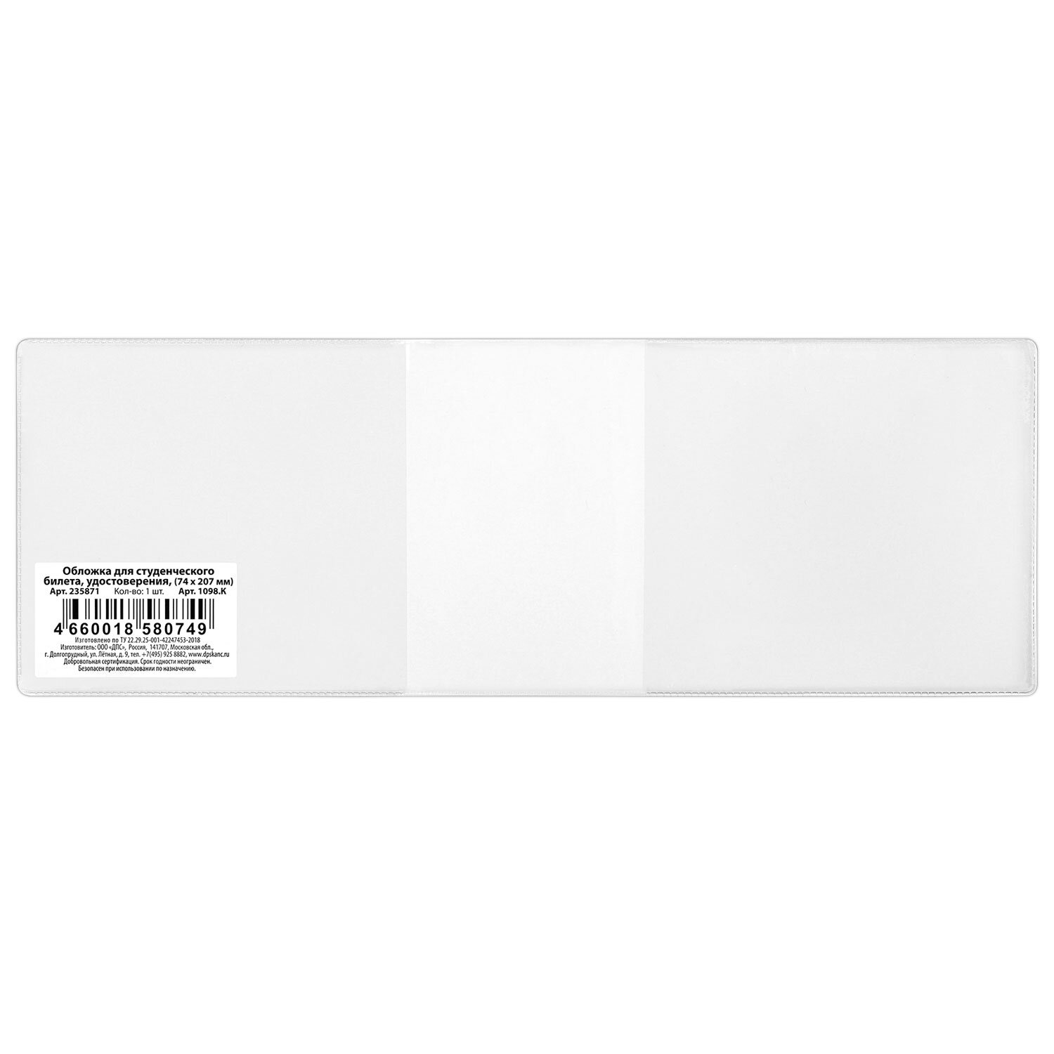 Обложка для студенческого билета, удостоверения, 104х74 мм, ПВХ, прозрачная, ДПС, 1098.К