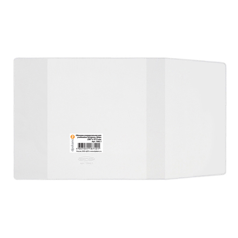 О товаре «Обложка ПВХ со штрихкодом для учебников Петерсон, Моро (1,3), Гейдмана, ПЛОТНАЯ, 120 мкм, 267х512 мм, универсальная, прозрачная, ДПС, 1382.1»