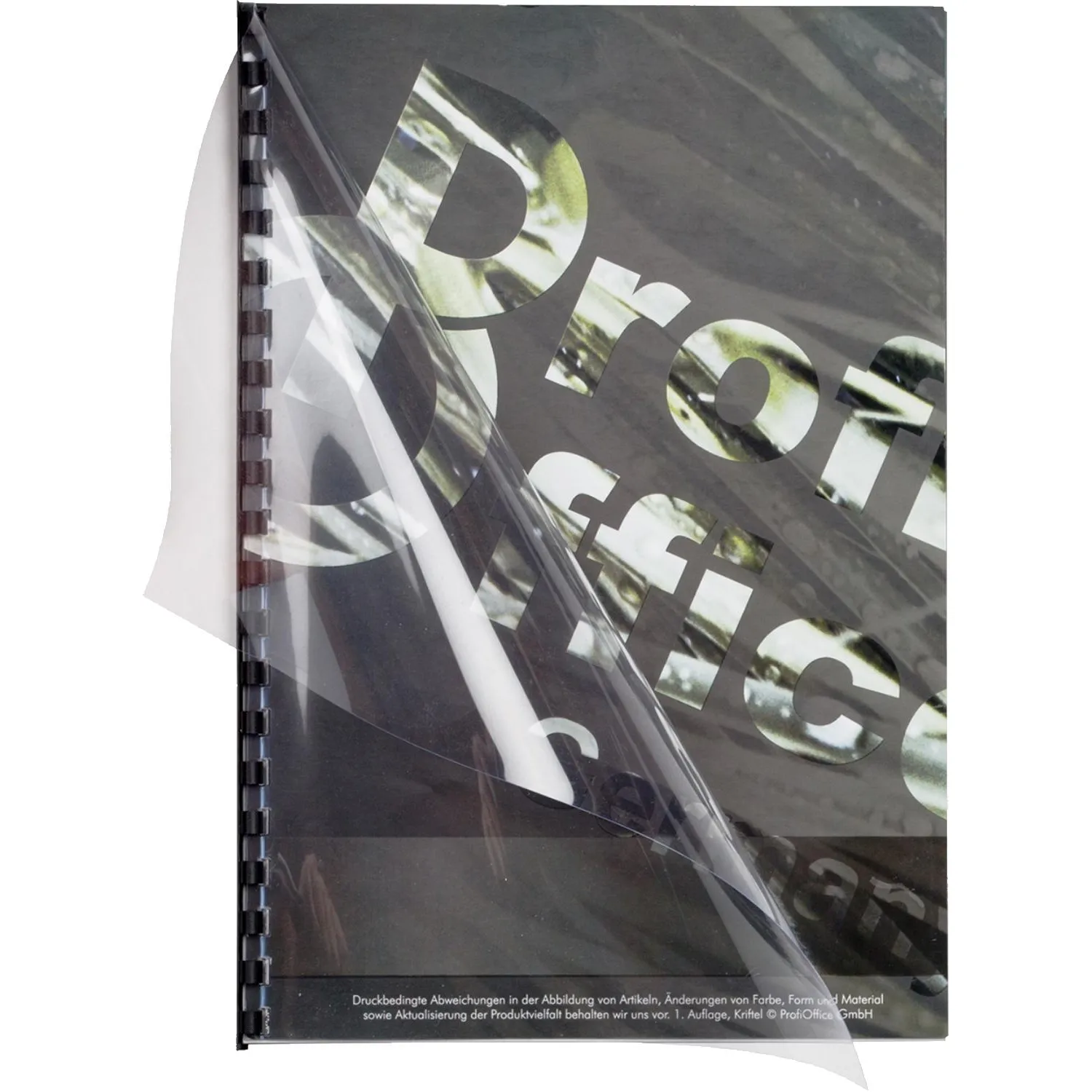 Пластиковые обложки для переплета ProfiOffice, прозрачные, А4 формата. Предназначены для переплета документов брошюровщиком с помощью пластиковых и металлических пружин.