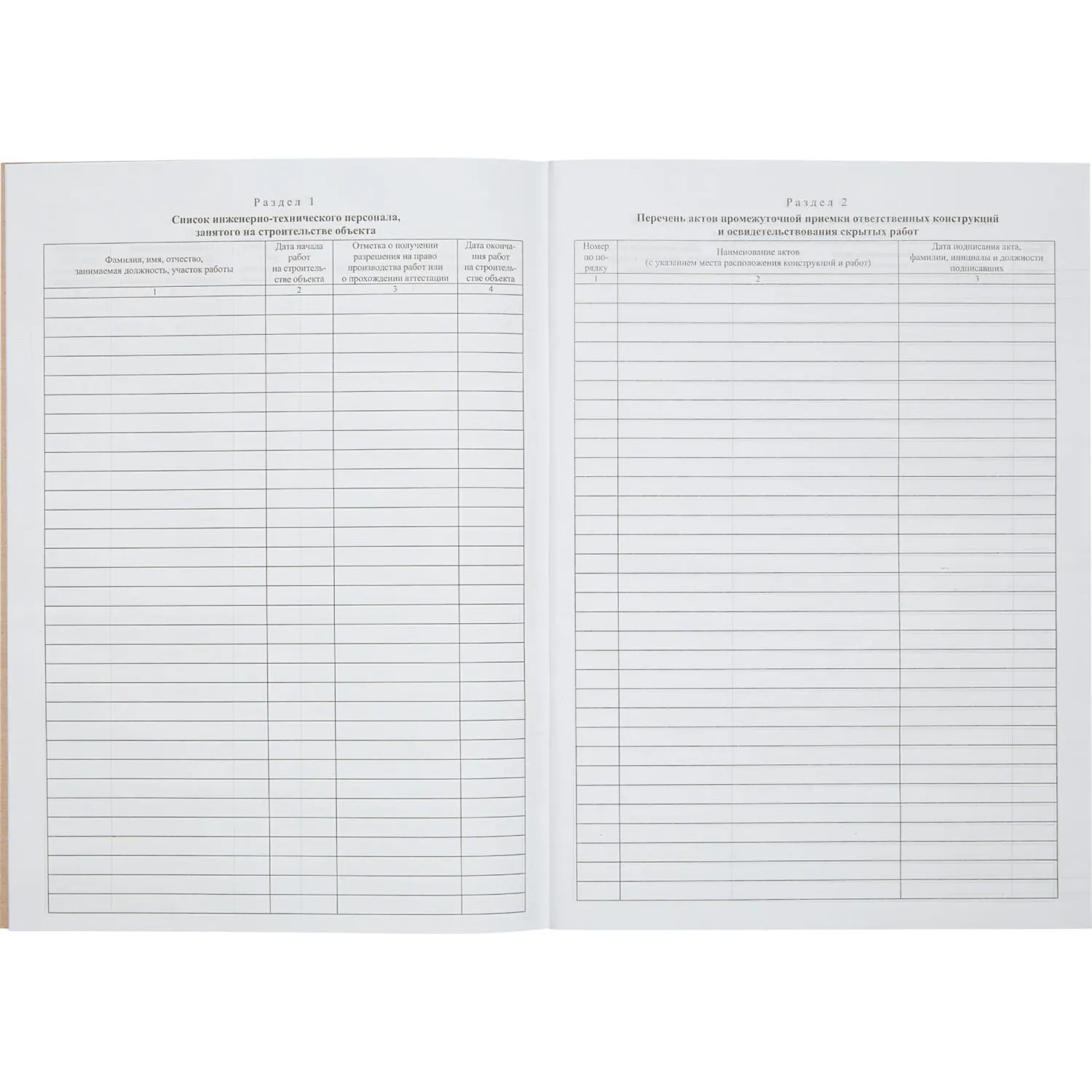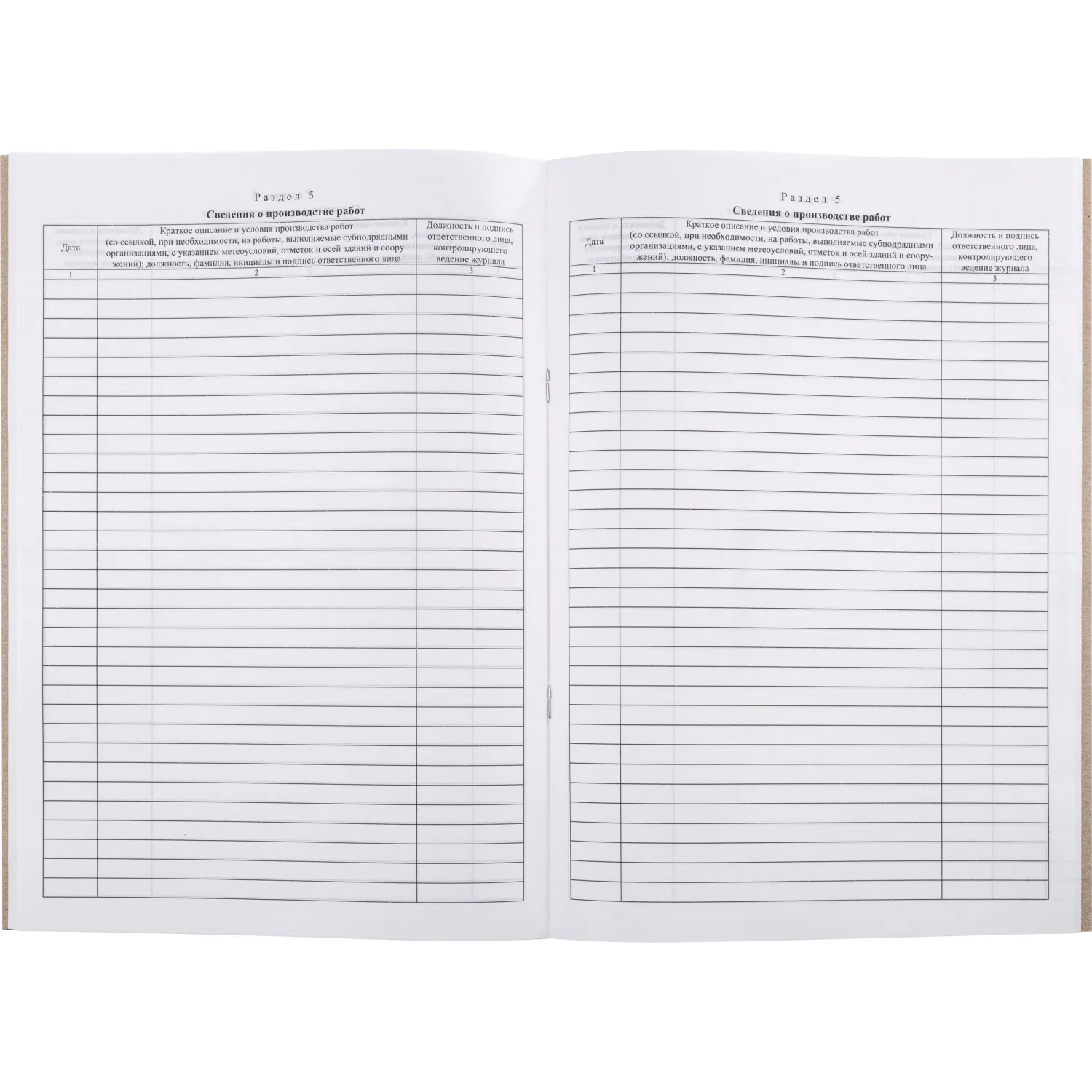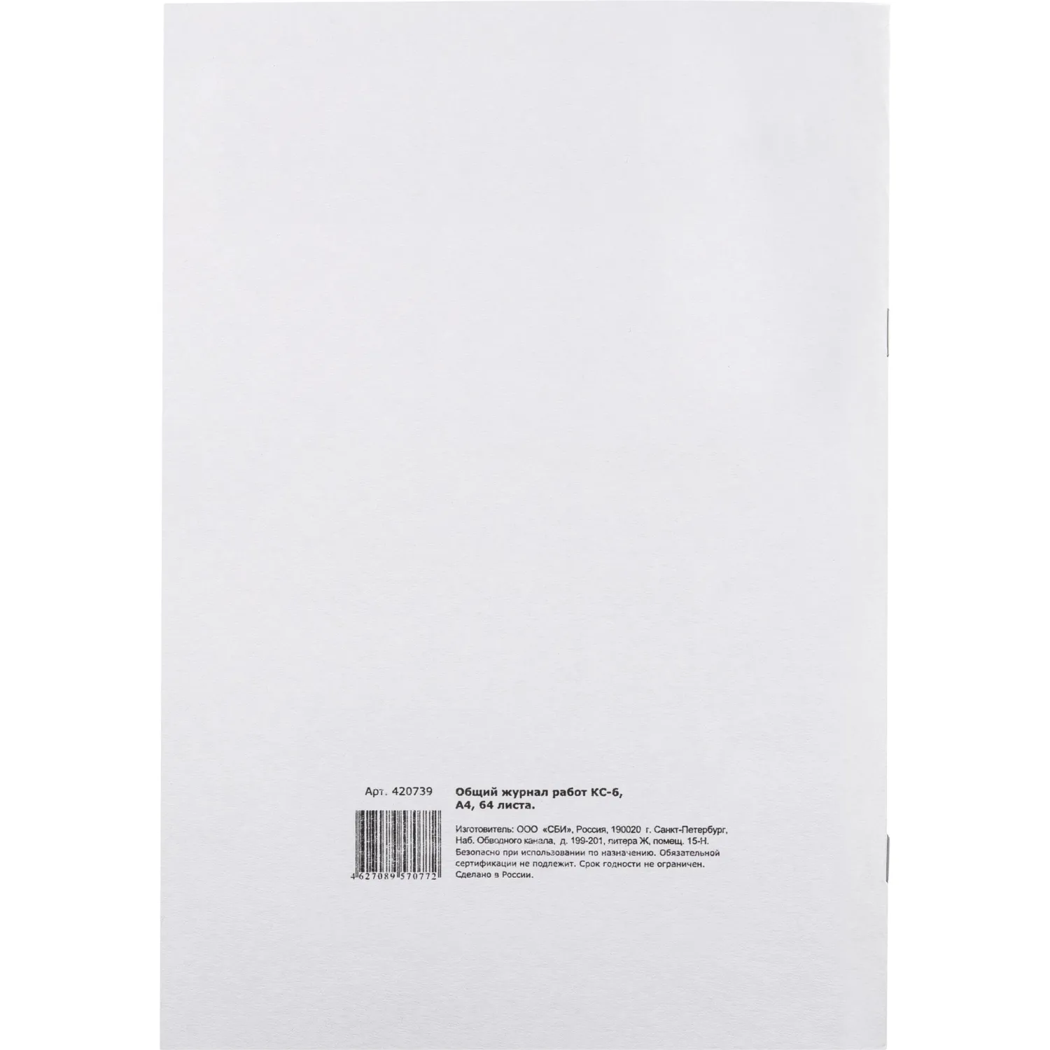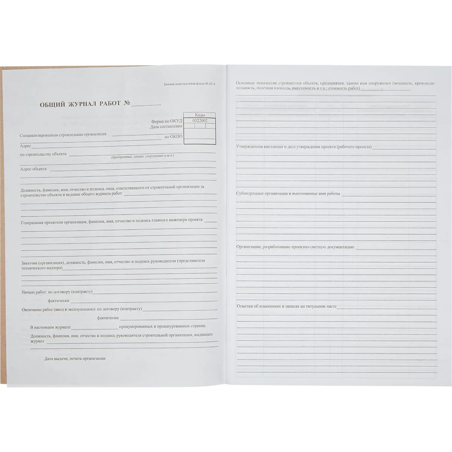 Общий журнал работ, типовая межотраслевая форма КС-6. Изготовлен из офсетной бумаги, сшит с помощью скрепок. Журнал имеет формат А4, содержит 64 листа.