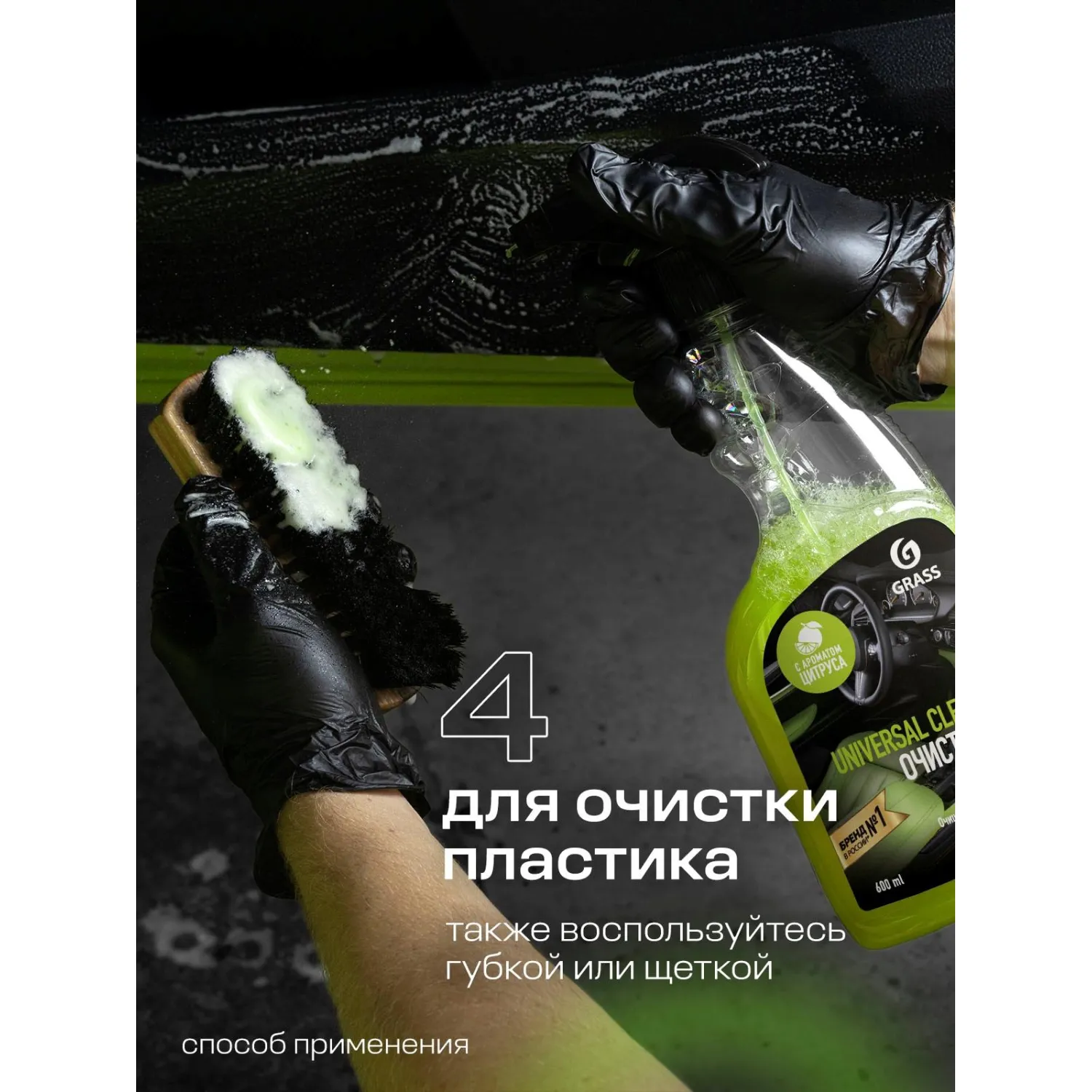 Назначение: профессиональный чистящий состав для очистки салона автомобиля от любых загрязнений. Идеально подходит для всех видов тканей, искусственной кожи и пластика.