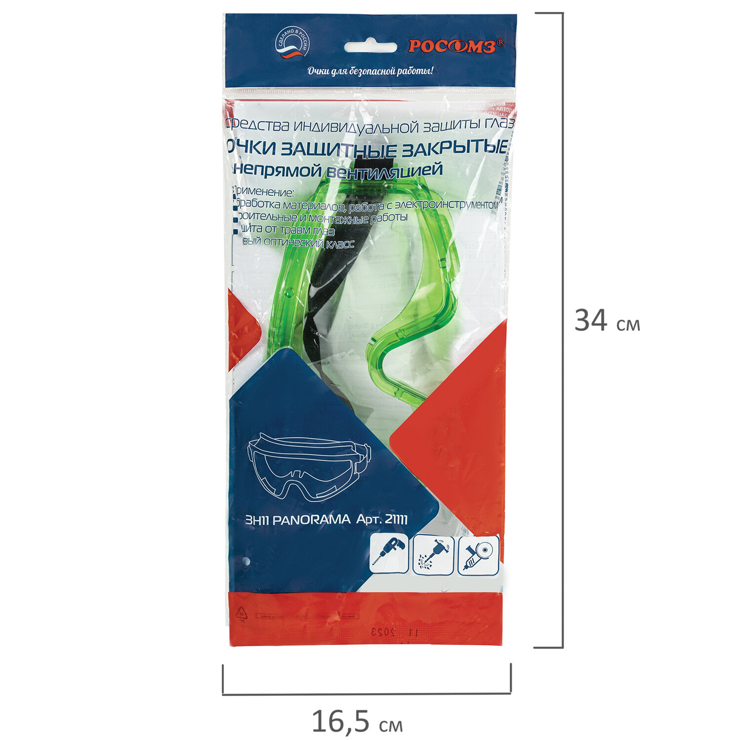 Очки защитные закрытые универсальные РОСОМЗ ЗН11 Panorama прозрачные с непрямой вентиляцией (21111). Защитные очки, изготовленные из пластика с поликарбонатной линзой. Очки имеют закрытую конструкцию и вес 110 г. Они специализированы для работы в профессиональных сферах, требующих защиты глаз.