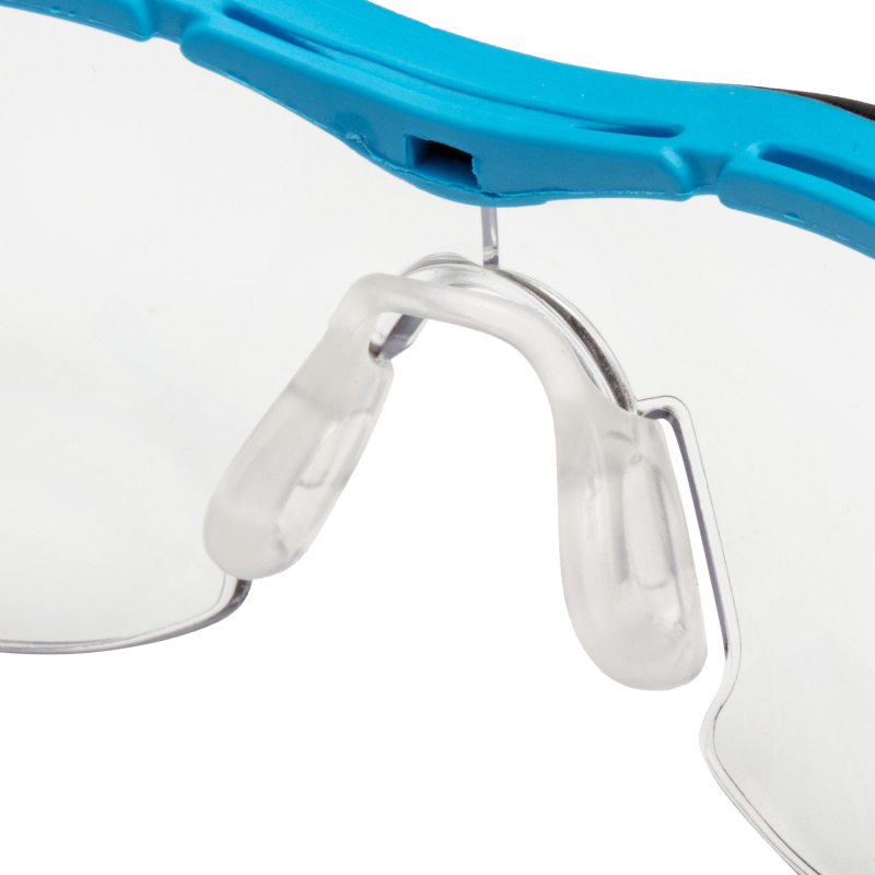 Дополнтельная защита от попадания частиц сбоку. Мягкие заушники, регулируемые углу наклона, позволяют адаптировать очки под индивидуальные требования пользователя. Регулируемый носоупор обладает противоскользящим действием.