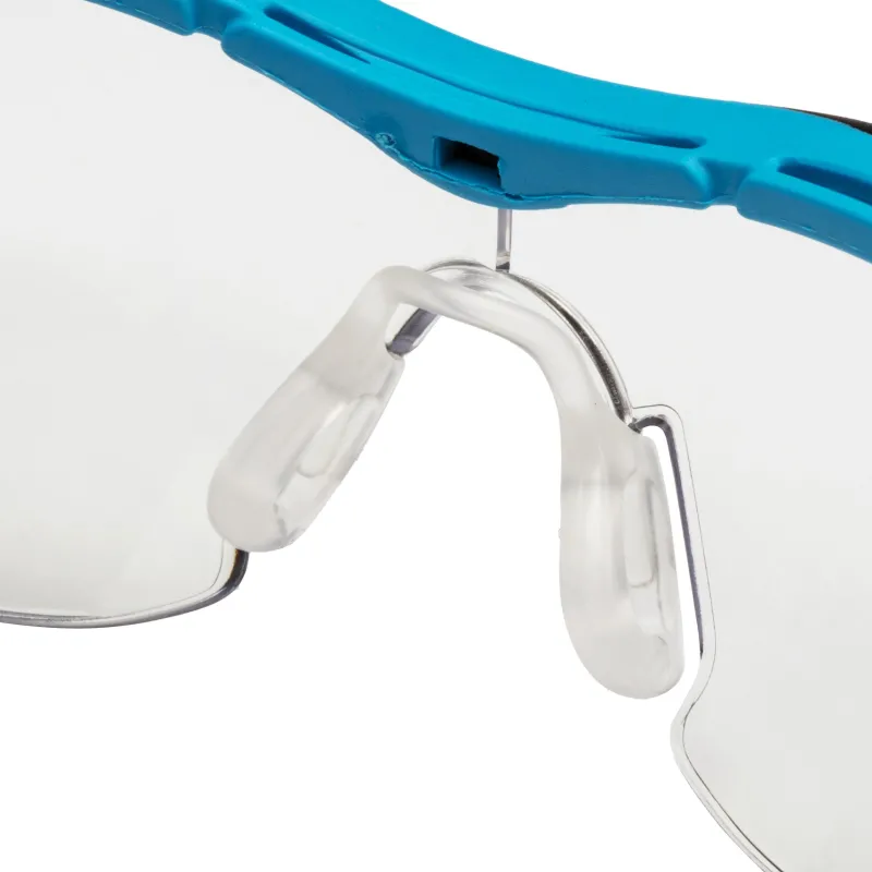 Увеличенная защита от попадания механических частиц и жидкостей сверху и сбоку. Мягкие заушники, регулируемые по длине и углу наклона, позволяют адаптировать очки под индивидуальные требования пользователя. Мягкие носоупоры обладают противоскользящим действием. Вставка Evoprene в верхней части оправы — защита от пыли, пота и переохлаждения.