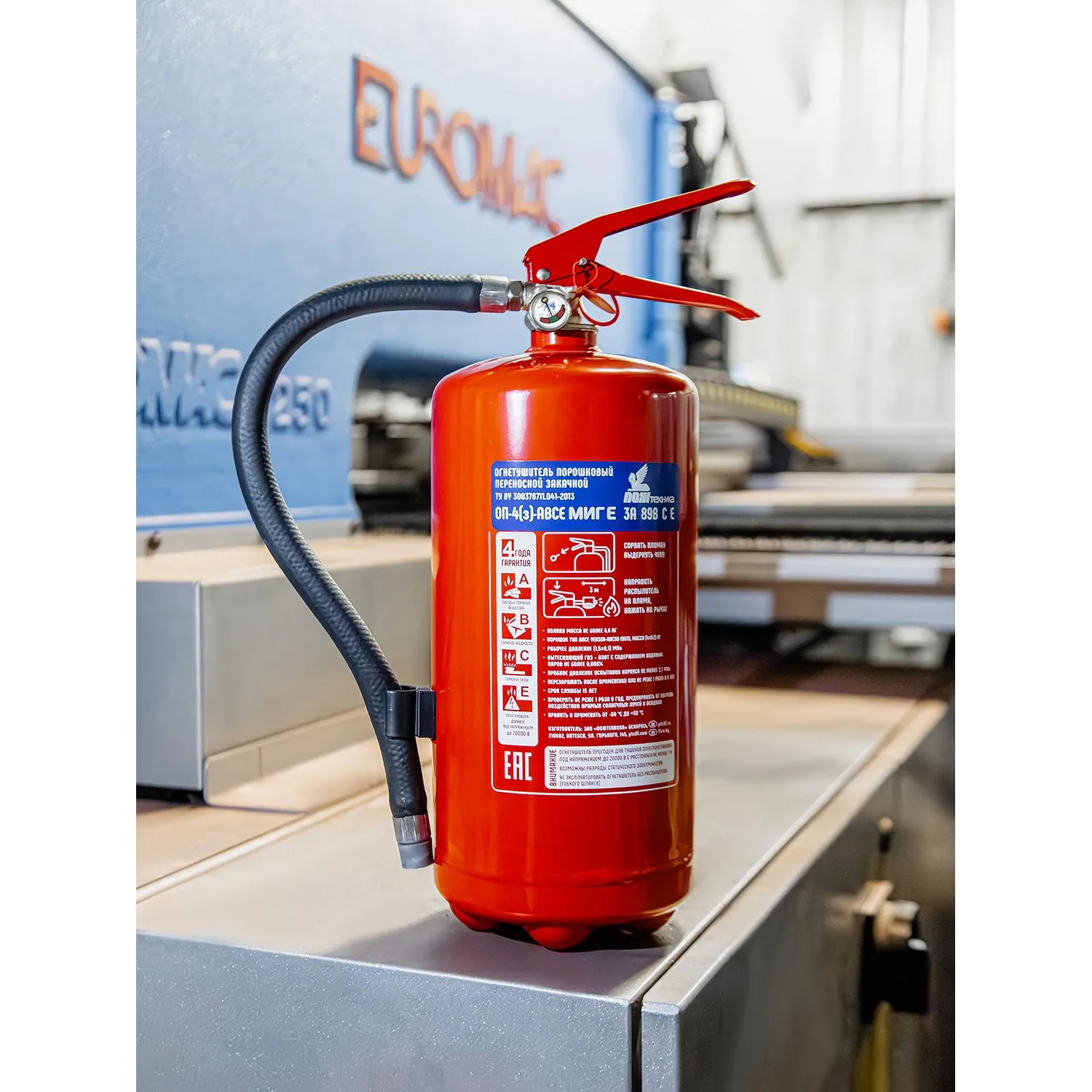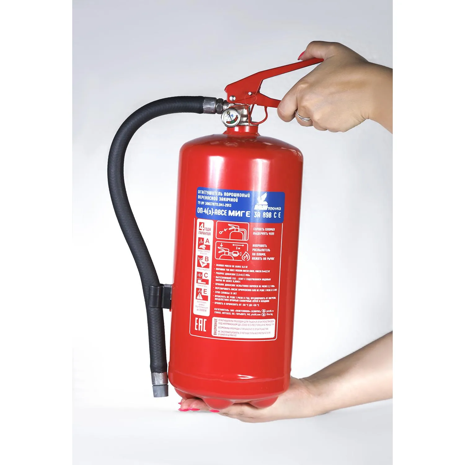 Огнетушитель порошковый ОП-4(з) «Миг» E ABCE — это закачной огнетушитель, предназначенный для тушения горючих жидкостей, твердых веществ, газов и электроустановок под напряжением до 1000 В. Он эффективен в диапазоне рабочих температур от −50°C до 50°C.